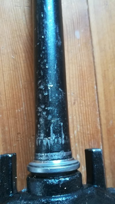 Der obersten Lagerschale der Lenkkopflagerei sieht man schon auf dem Foto an, dass bei ordentlicher Einstellung der Tüvmann das Rastern bemängeln wird.