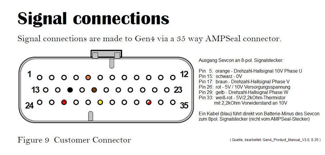 Hänge dafür mal Bilder von den entsprechenden Seiten mit ein paar Anmerkungen an: Entsprechend der AMPSeal-Anschluss am Sevcon: