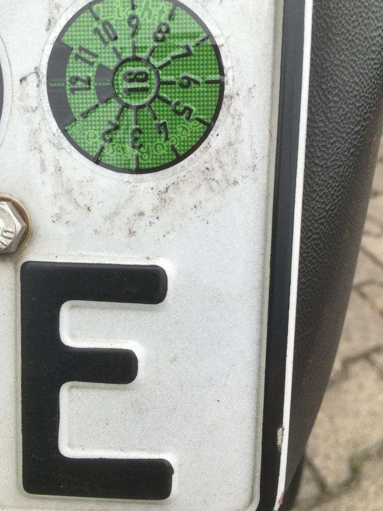 Jetzt wird es wieder ernst: morgen spätnachmittag steht der erste HU-Termin vom vR one an, mit Windschild und unoriginaler Motorritzelgröße. Wenigstens die kleineren Winterreifen sind im Fahrzeugschein nachgetragen, wobei ich das ja selber auf eigene Kosten nachholen musste, weil QvR das zwar in ihrer wunderschönen, farbig gedruckten Bedienungsanleitung vorschreiben, aber vergessen hatten, das beim Zulassungsverfahren in der Übereinstimmungserklärung zu erwähnen...