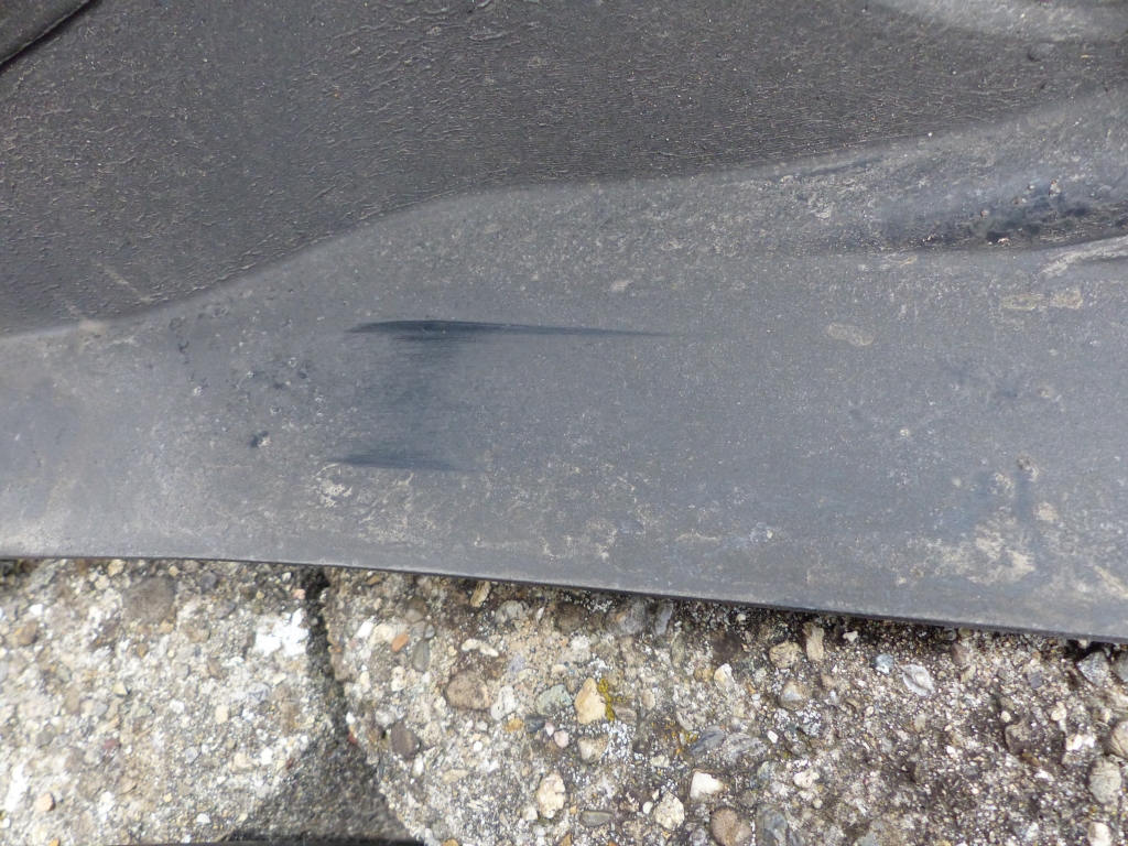 Erstens hat er zwei Längsrisse im Rücken: Dann hat der Rücken auch Abriebspuren: Woher der Rückenabrieb kommt? Er streift (gelegentlich?) unten in der Riemenverkleidung:Da wird wohl die Heißluftpistole zum Einsatz kommen müssen, um den unteren Rand weiter runter zu biegen...