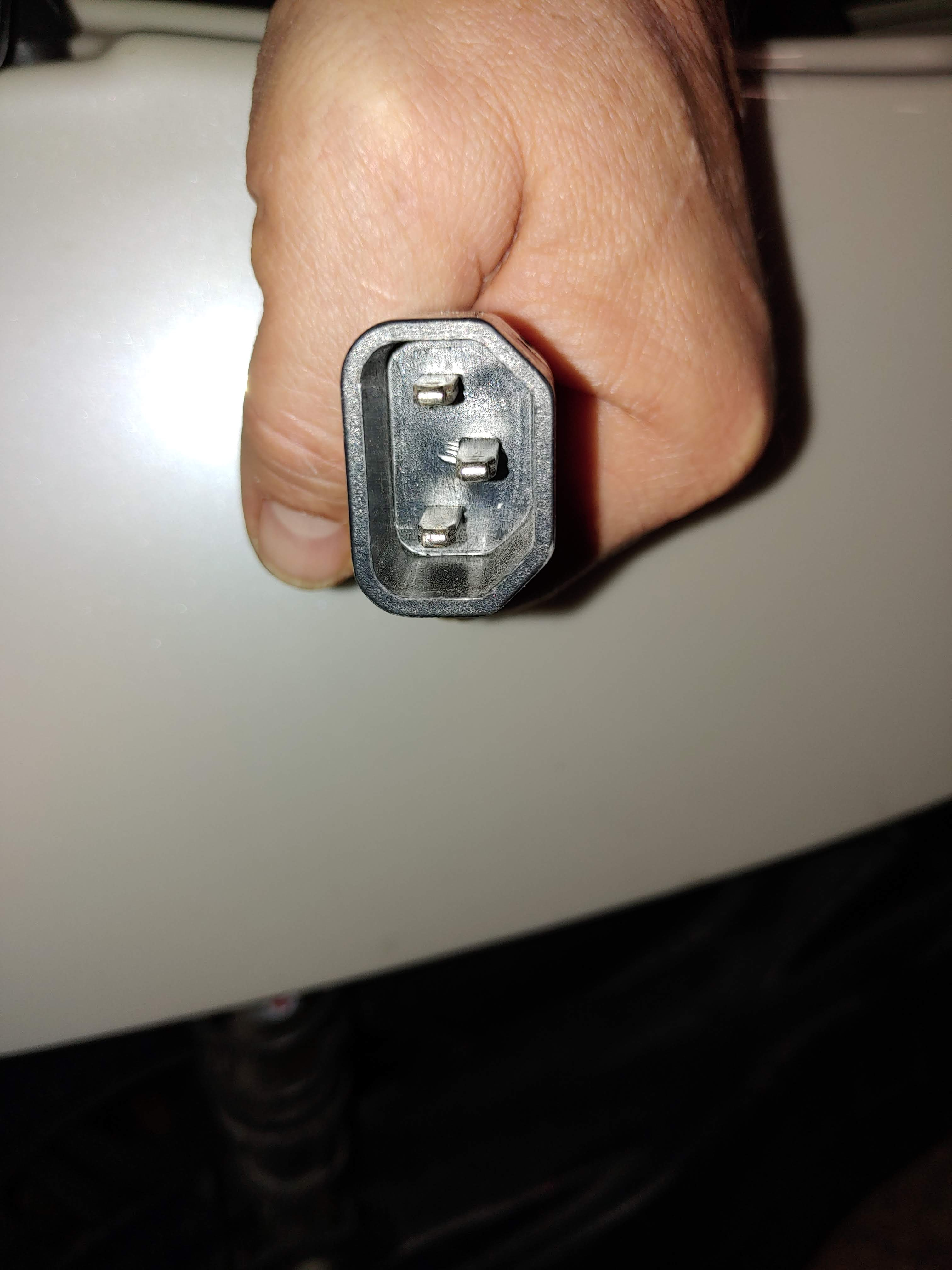 Der Kaltgerätestecker war schon vor Jahren schon leicht abgescheuert, den hatte behelfsmäßig umwickelt, so dass ich hier zuallererst schauen wollten. Nun, nach dem Ausbau und Öffnen des Ladegeräts sehe ich ein, dass ich hier kaum an die Anschlüsse komme. Die Elemente der Platine auf den Kühlkörper geklebt, und der Anschluss drunter.