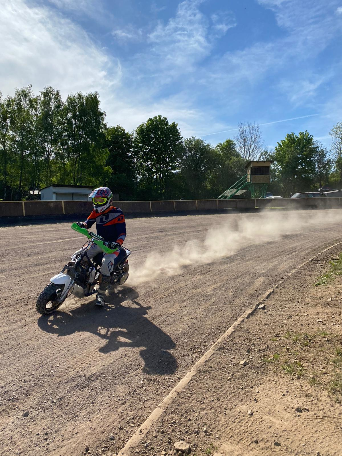 Auf der Sandbahn hält der ewig! Auf der Cross Strecke mit vielen Sprüngen ist nach 4 Stunden Dauereinsatz Schluss.