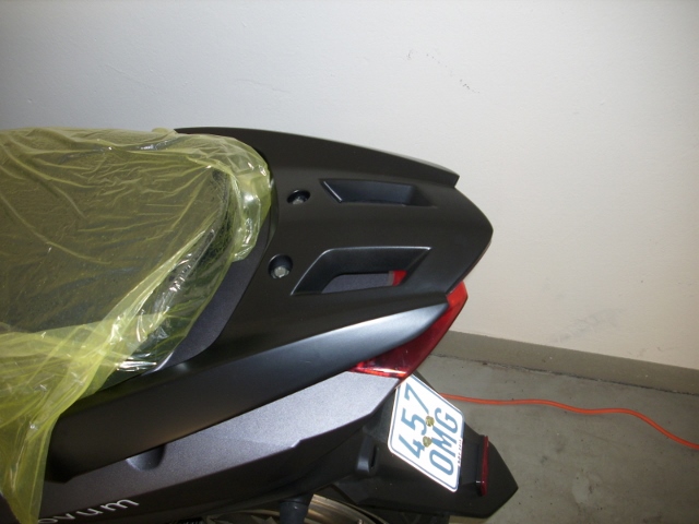 Auserdem ist der Lack am Gepäckträger total zerkratzt(wie auch immer die das geschafft haben).Den Gepäckträger hab ich ausgebaut und abgeschliffen,dann neu grundiert und mit Schwarzmatt neu Lackiert.