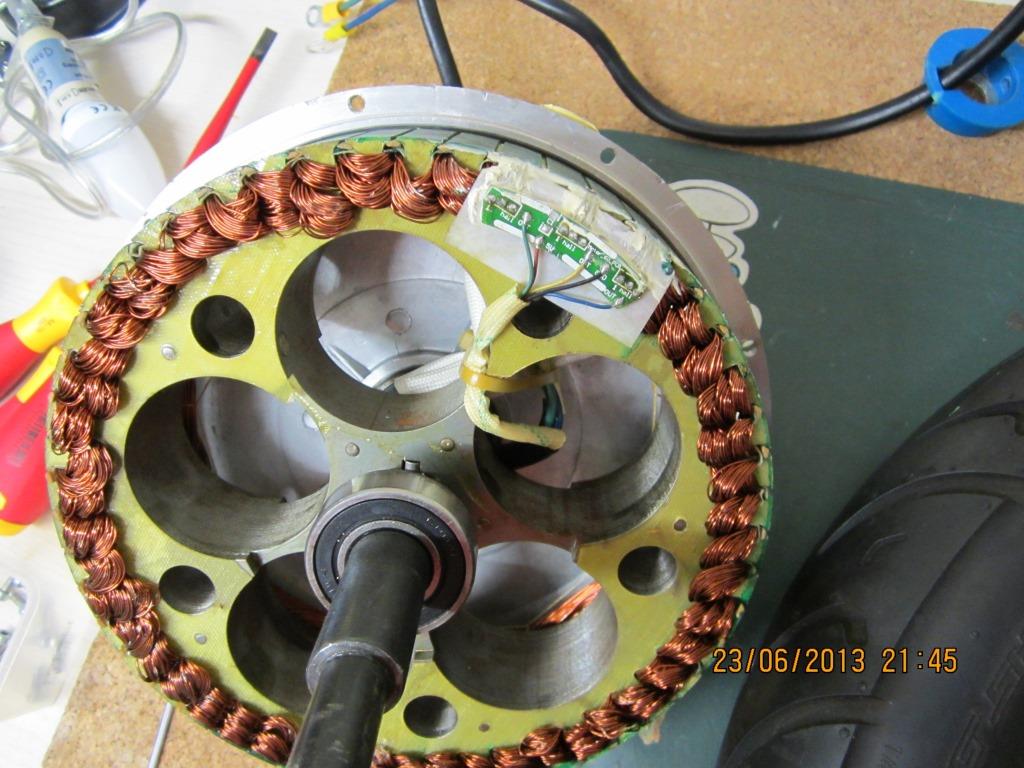 Die Hall-Sensoren sind an der kleinen Platine festgelötet und dann im 90° Winkel in die Nuten eingeschoben.