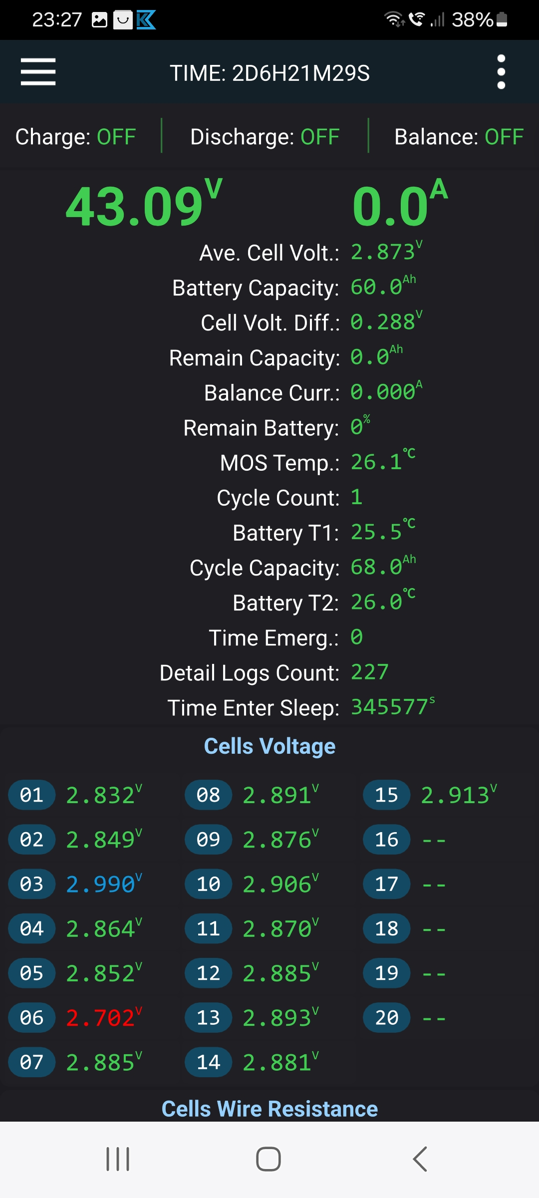 Jetzt ist die Nummer drei höher als der Rest. Das dürfte das sein was das BMS da beim entladen noch reingeschaufelt hat.