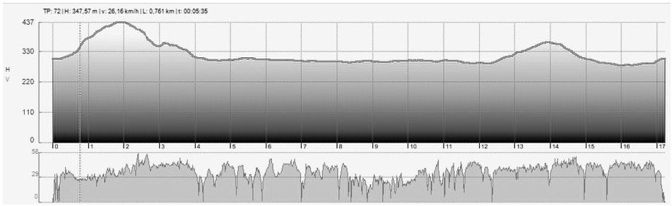 bin eben (GPS) 17,2km gefahren, lt. Batterieanzeige 31km verbraucht (war ein Berg drin siehe Grafik, 2 Personen, zusammen ca. 140kg). Langsamste Stelle bergauf ca. 26 km/h (GPS), gerade 45km/h (GPS) Anzeige 50km/h, schnellste bergab ca. 58 km/h (GPS). Fazit: Fährt besser als ich erwartet habe, minimaler Verlust an Geschwindigkeit bergauf. Allerdings ca. 30% Reichweitenverlust gegenüber Sommer.