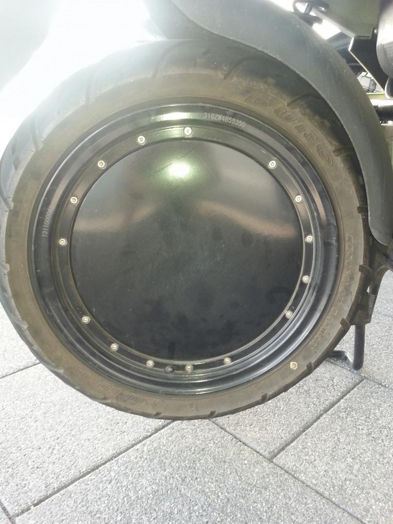 Dann habe ich mal die Schrauben auf der rechten Felgenseite nachgezogen; da waren ein paar nicht richtig angezogen.