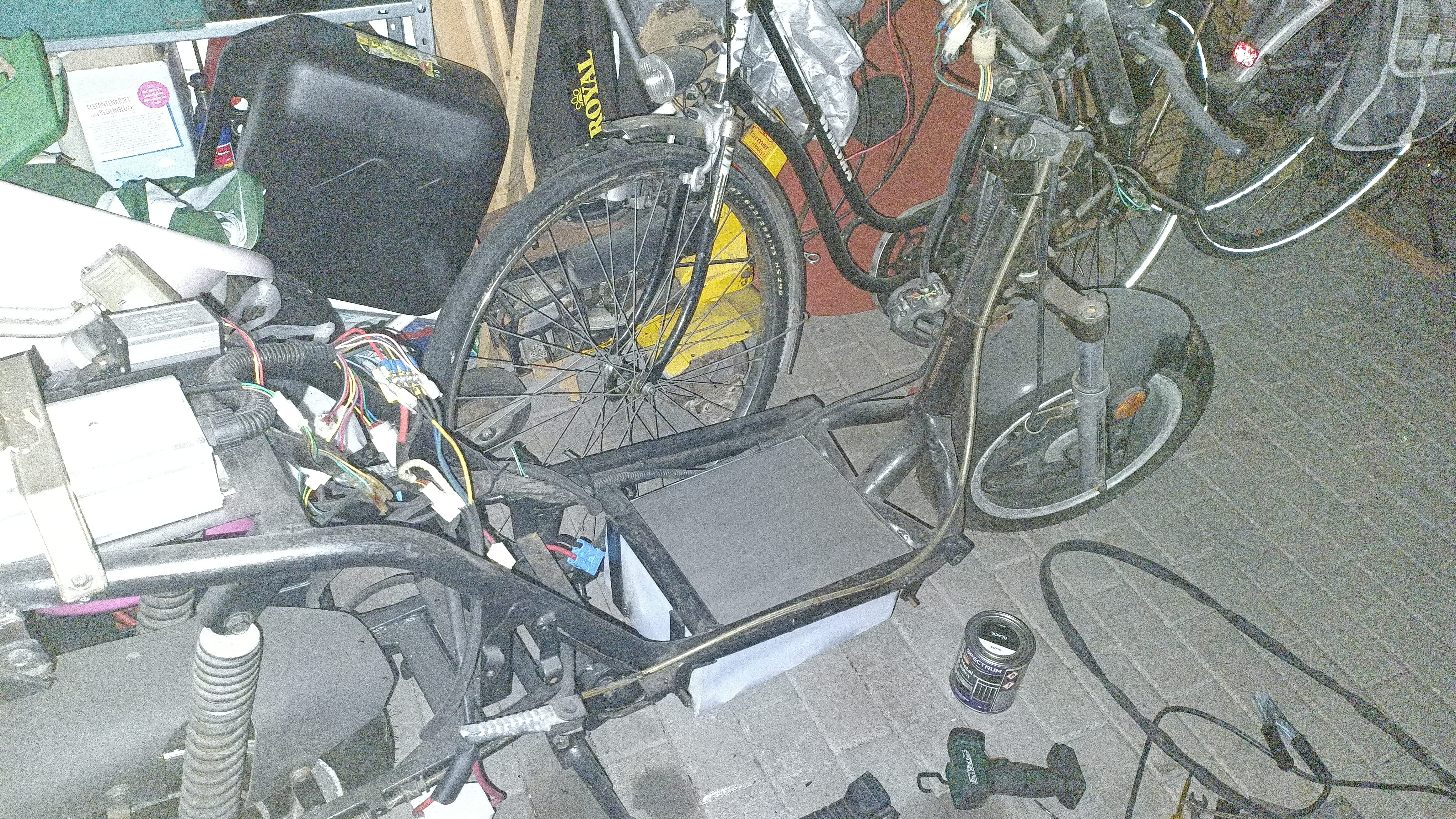 Der neue Kasten ist aus 2mm Dicken Stahlplatten geschweißt worden und auch an dem Rahmen des Rollers verschweißt. Auch wenn ich dafür die Streben etwas anpassen musste.