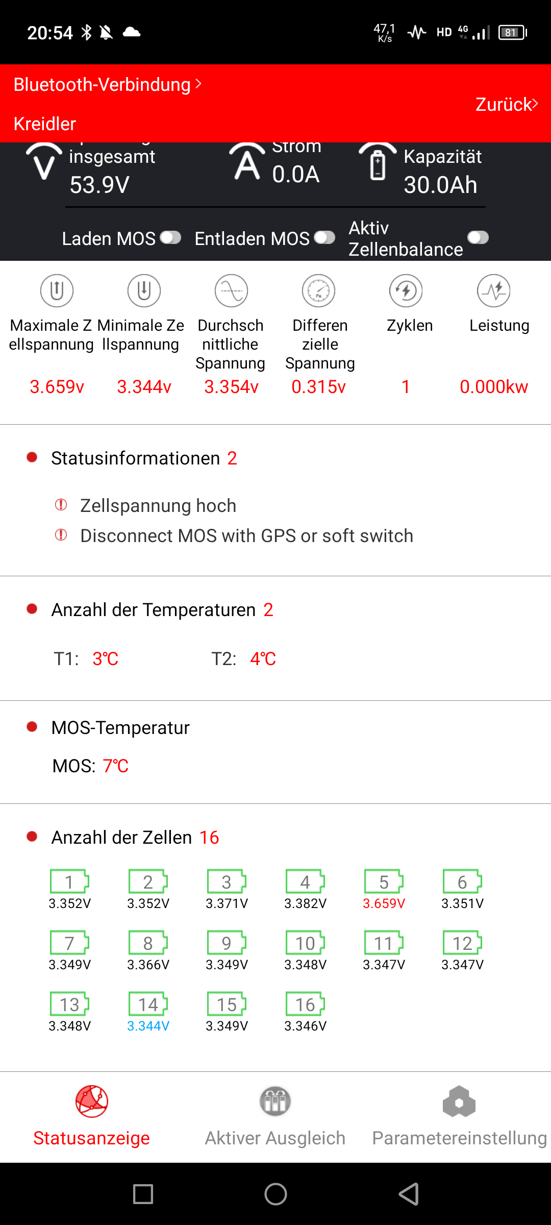 mein Rat zum Ant-BMS ist halt, den Stecker der Zellenkabel (wenn diese neu guten Kontakt haben) nie abzuziehen und erneut anzustecken. Dann lieber Kabel umlöten oder genug neue Kabelsätze bestellen. Das BMS ist gut, aber die mitgelieferten Steckverbinder sind sch.....