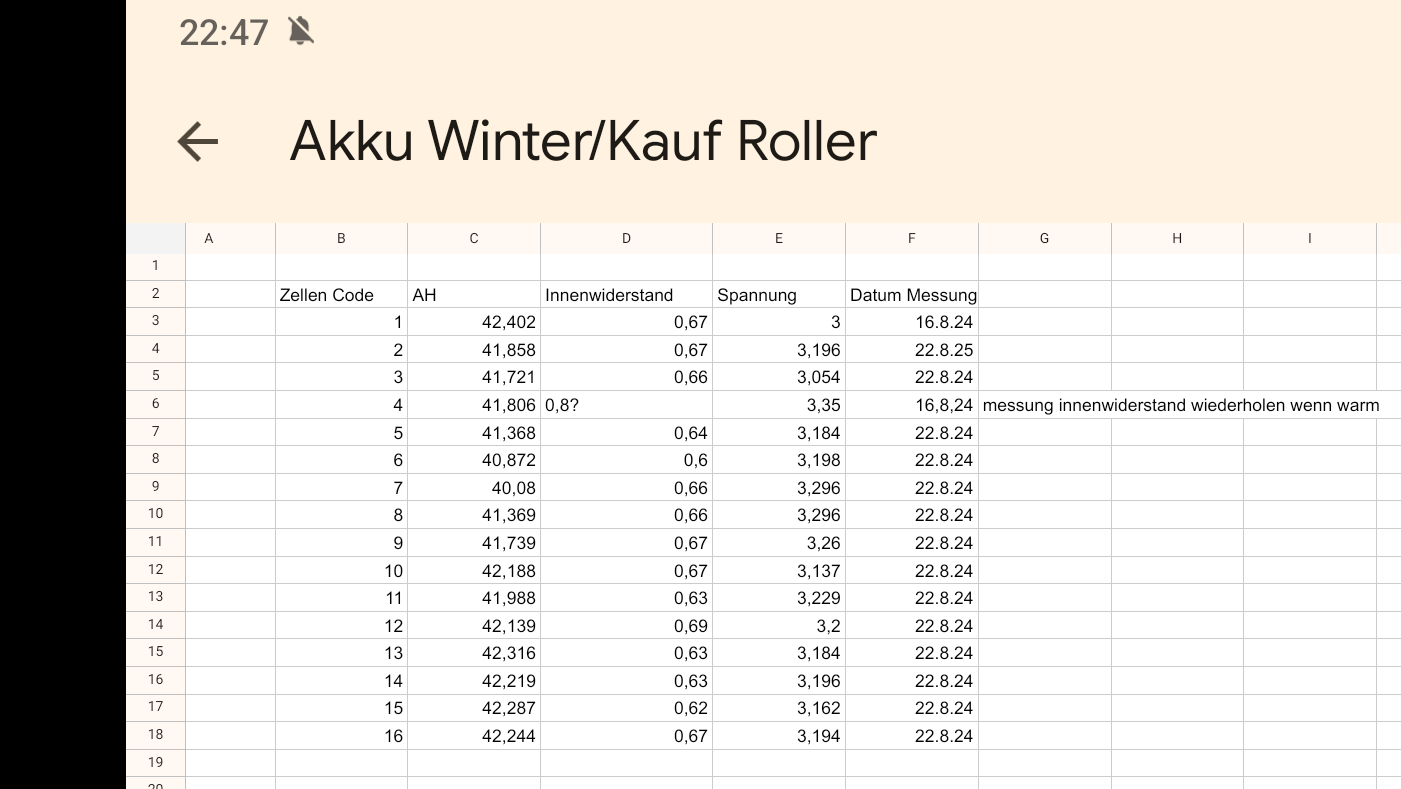 Der Akku ist jetzt soweit vermessen, hab es mal als Google Tabelle für später gespeichert.