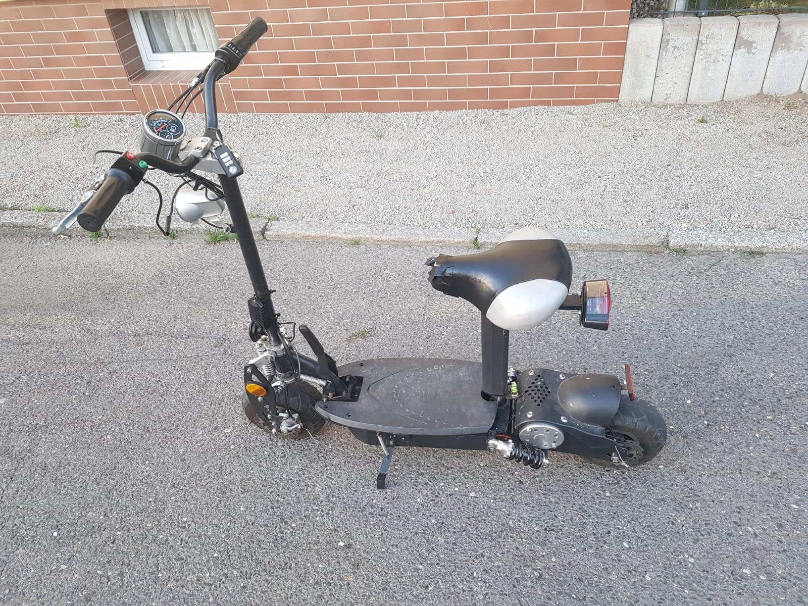 Auf jeden Fall ein Fahrzeug, was im Forum unter dem Bereich E-Scooter "Forca / Mach1 / Rolektro / eFlux" und andere geführt wird. Sieht aber nach einer schon älteren Variante aus. Und nach einer Variante, die nicht für den öffentlichen Verkehrsraum zugelassen ist, weil ich nicht erkennen kann, dass eine Halterung für das kleine Versicherungskennzeichen vorgesehen und vorhanden ist.