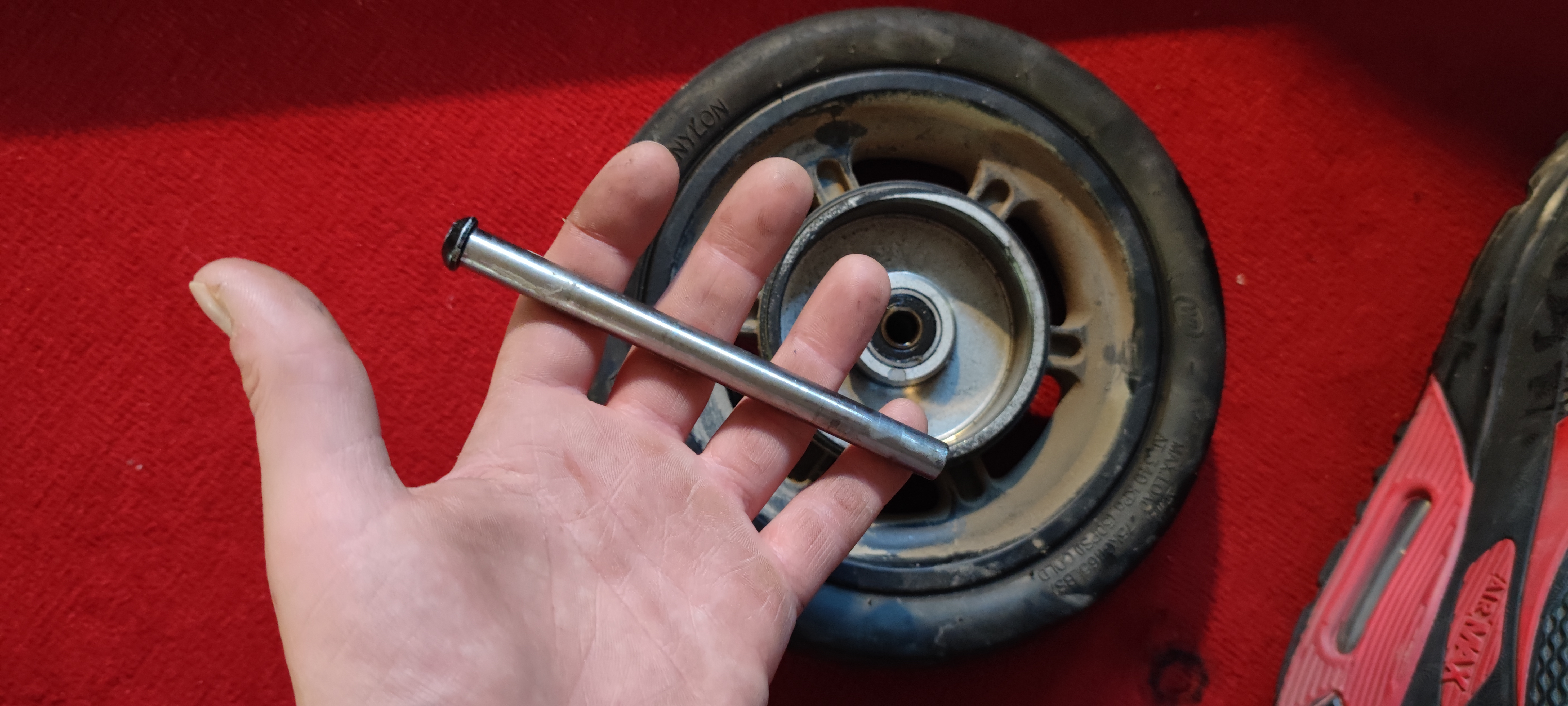 Ich habe schon viele Roller repariert und kann euch als Tipp nur geben: Setzt euch auf einen Kasten oder Stuhl und achtet darauf dass ihr Teppich als Untergrund habt, wenn ihr dann noch ein bisschen Kraft habt kann man so ein Rad "locker" alleine wechseln.