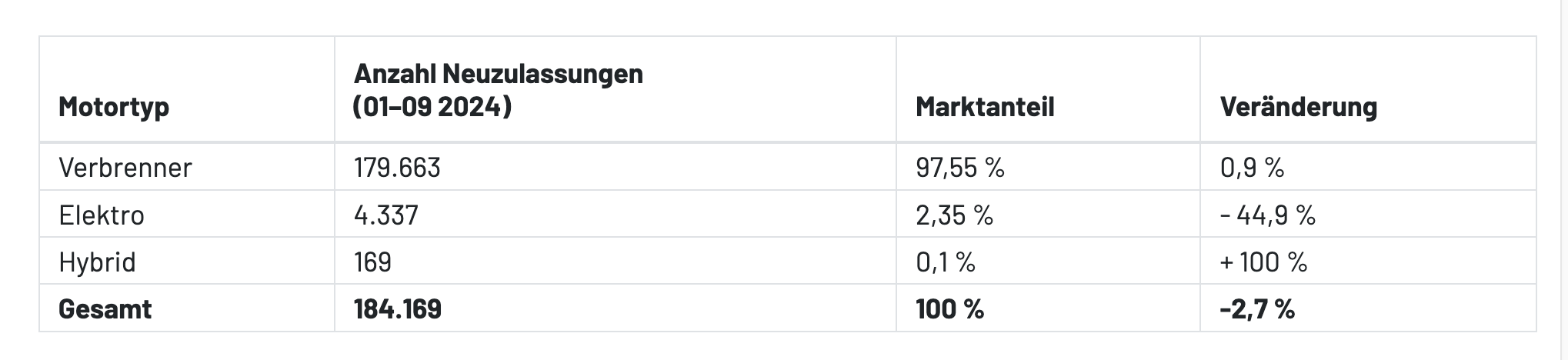 Und nicht vergessen: 2023 gab 's noch die THG-Prämie. Deshalb waren die Neuzulassungszahlen damals gegenüber 2024 noch so außerordentlich hoch, als sie dann abgeschafft wurde.