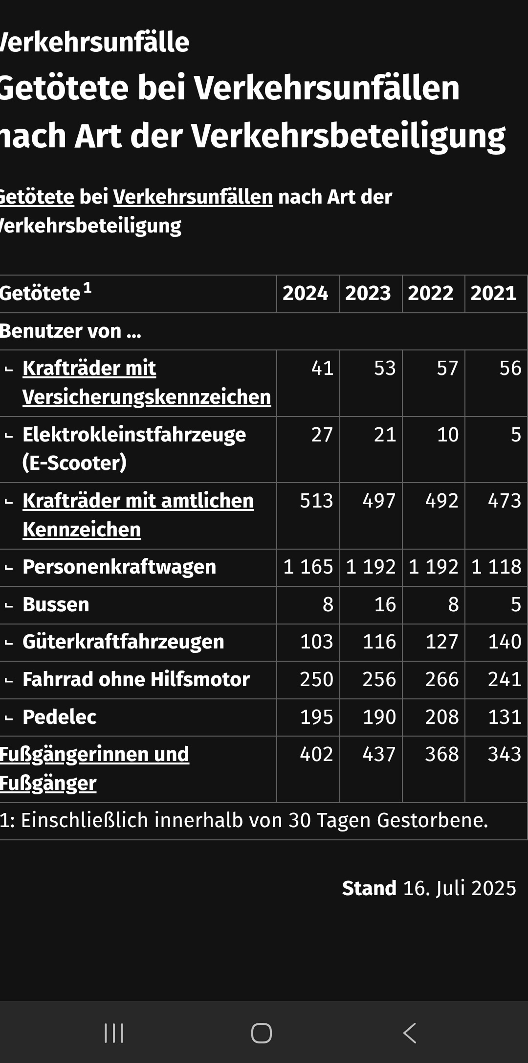 Wolluminator hat geschrieben: ↑Mo 10. Nov 2025, 22:52Und klar ist mMn auch, wenn mehr Leute 2Rad fahren würden, gäbe es auch weniger Tote.