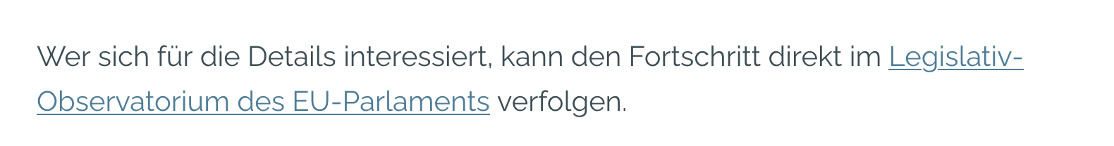 ist " Legislativ-Observatorium des EU-Parlaments " leider nicht verlinkt. Schade.