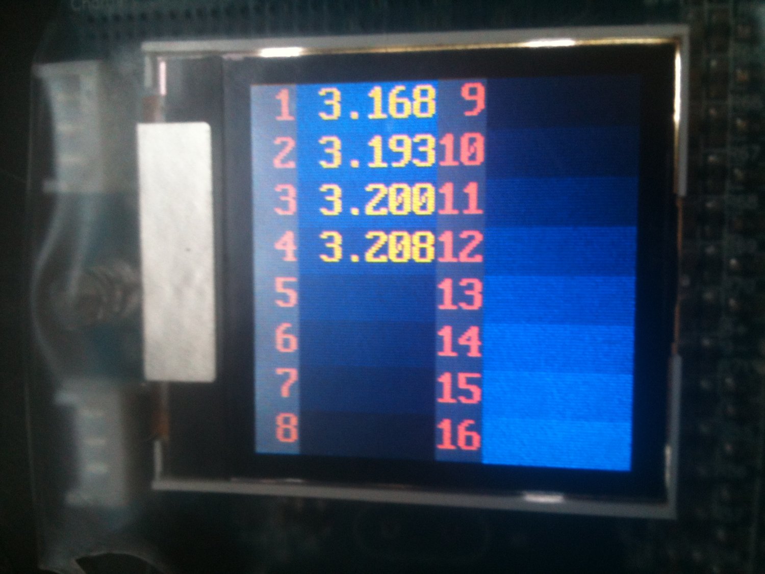 Das zweite Bild zeigt wieder die Ruhespannung der Einzelzellen nach 1h der Ladung. Auch hier sind diese Zellen