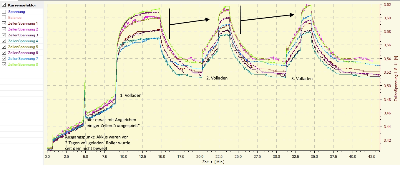 Meine Zellen: Zellen 1 bis 8 Zellen 9 bis 16 Oder sollte ich doch besser mal mit dem Laborlader einzeln die betroffnen Zellen anheben bis auf 3.65V?