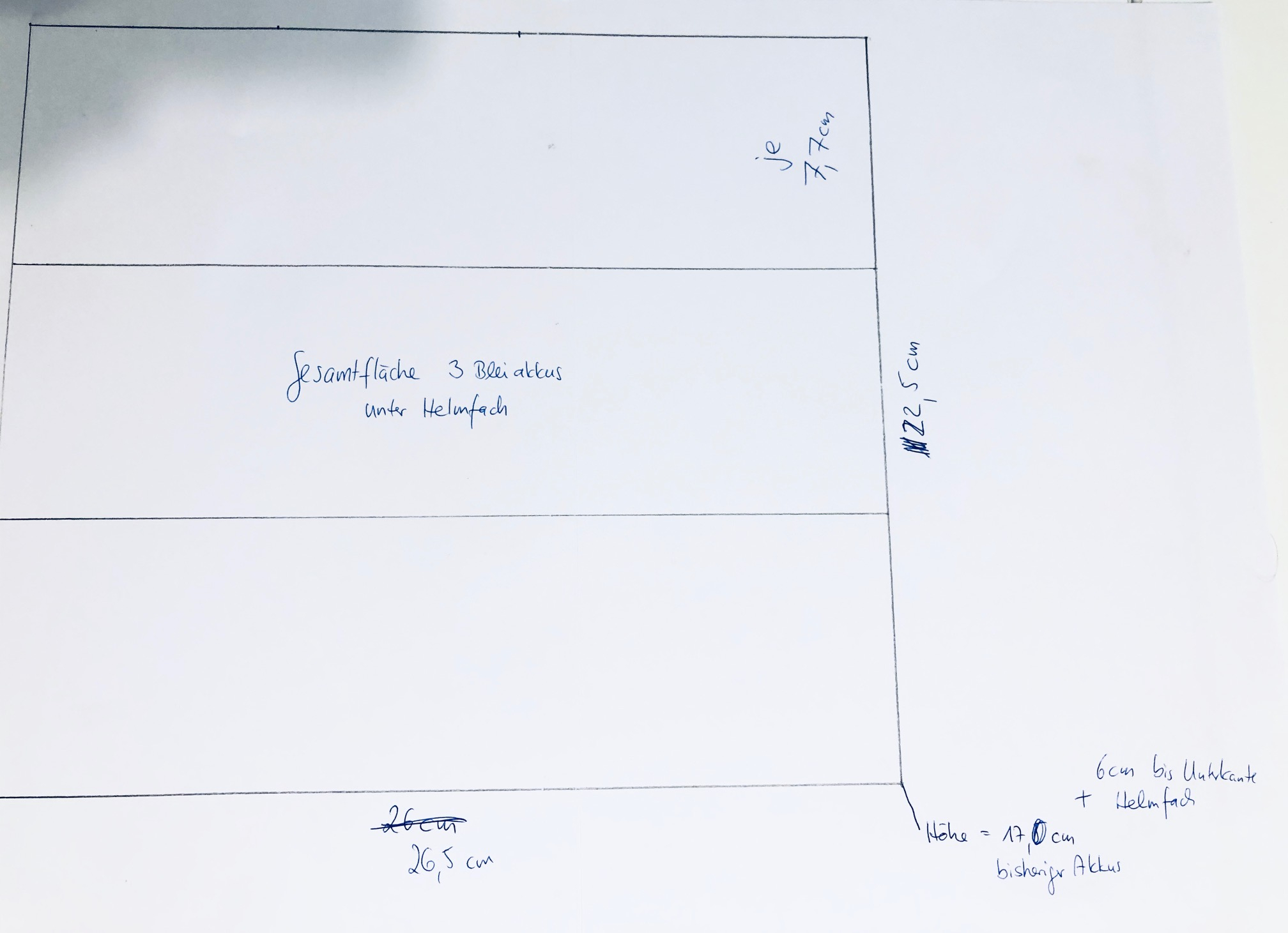 Schema Platzbereich 3 Bleiakku´s unterm Helmfach: