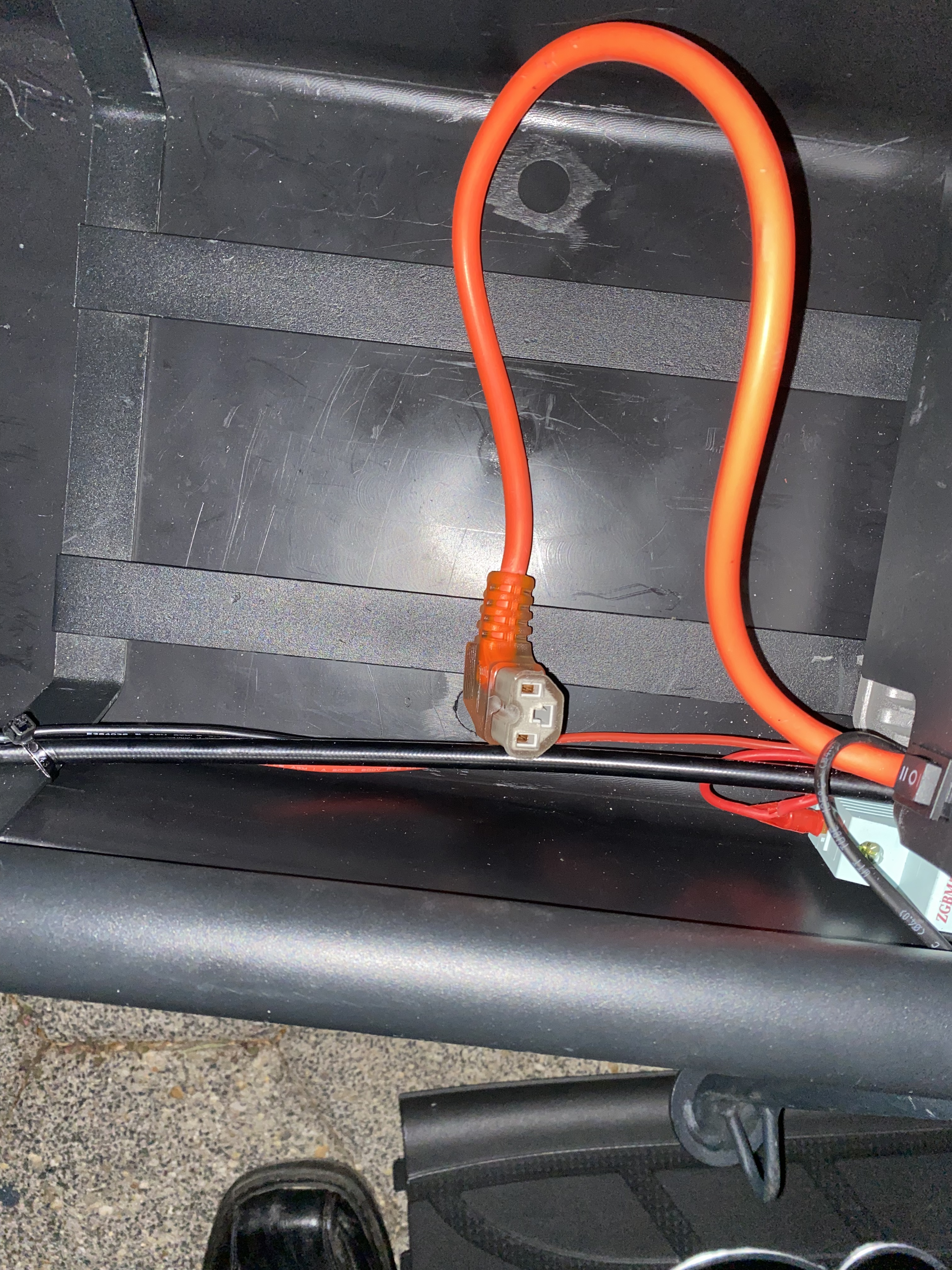 Im Roller ist offenbar ein Stecker-Kabel für höhere Stromstärken (schwer zu bekommen). Das Kabel oben ist dünner und taugt eher zum Laden.