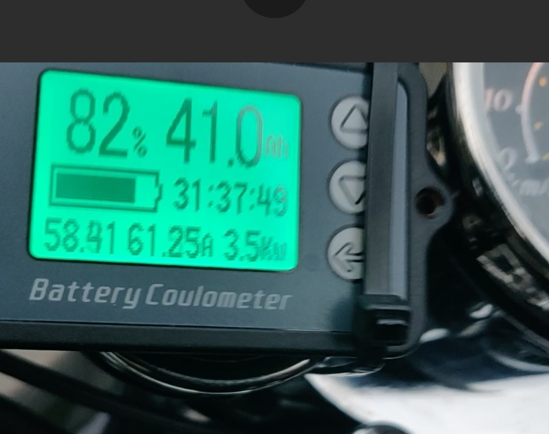 als auch die Amperestunden, die das Ladegerät wieder hineinlädt (Prinzip beim fest eingebauten Akku). Den 100%-Punkt muss man natürlich niedrig genug einstellen, damit nach Standzeit nachgeladener Strom (Ausgleich der Akku-Selbst-Entladung) nicht als zusätzlich vorhanden angezeigt wird. "Verpasst" so ein Coulometer den Aufladevorgang, weil der Akku beim Laden außerhalb des Fahrzeugs war, gibt es in den Geräten aber auch die Möglichkeit (tief im Menue) zum Einstellen einer Spannungsschwelle "voll". Falls man so ein Gerät in die Stromkreise des SUN S einbauen würde, könnte man z. B. 45 Ah als nutzbare Kapazität einstellen und 83 Volt als Spannungsschwelle "Voll". Wird der Akku frisch geladen eingesetzt und liegt knapp über 83 Volt springt das Coulometer uf 100% / 45 Ah und beim Entladen veringert sich mit jeder tatsächlich verbrauchten Amperestunde die Prozentanzeige bis 0% bei 0Ah (Anzeigewerte wenn 45 Ah verbraucht wurden). Die Sache arbeitet ganz zuverlässig. Fahren mit fast leerem Akku und trotzdem Vollgas bedeutet aber höherer Strom bei niedrigerer Spannung. Trotz geringerer Geschwindigkeit gehen da ggf, etwas mehr Ah je Kilometer verloren, als mit vollem Akku. Amperestunden sind ja nicht die Energiemenge.