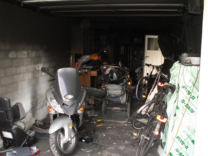 Schade um den schönen Roller, und was sonst noch alles in dieser Garage war... Echt Schei3e