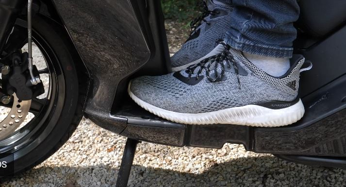 Sogar der Bugschild (oder wie nennt man die Roller Frontpartie?) wurde ausgespart, damit der Fuß auch seitlich rausgeführt werden kann.