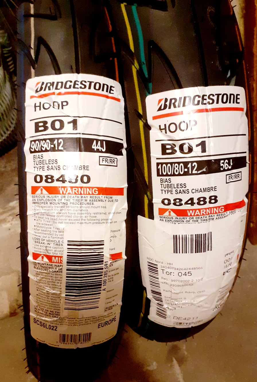 Wichtig ist, dass der Vorderreifen 90/90-12 44J hat und der Hinterreifen 56J hat, da hier die Gewichtsverteilung anders ist