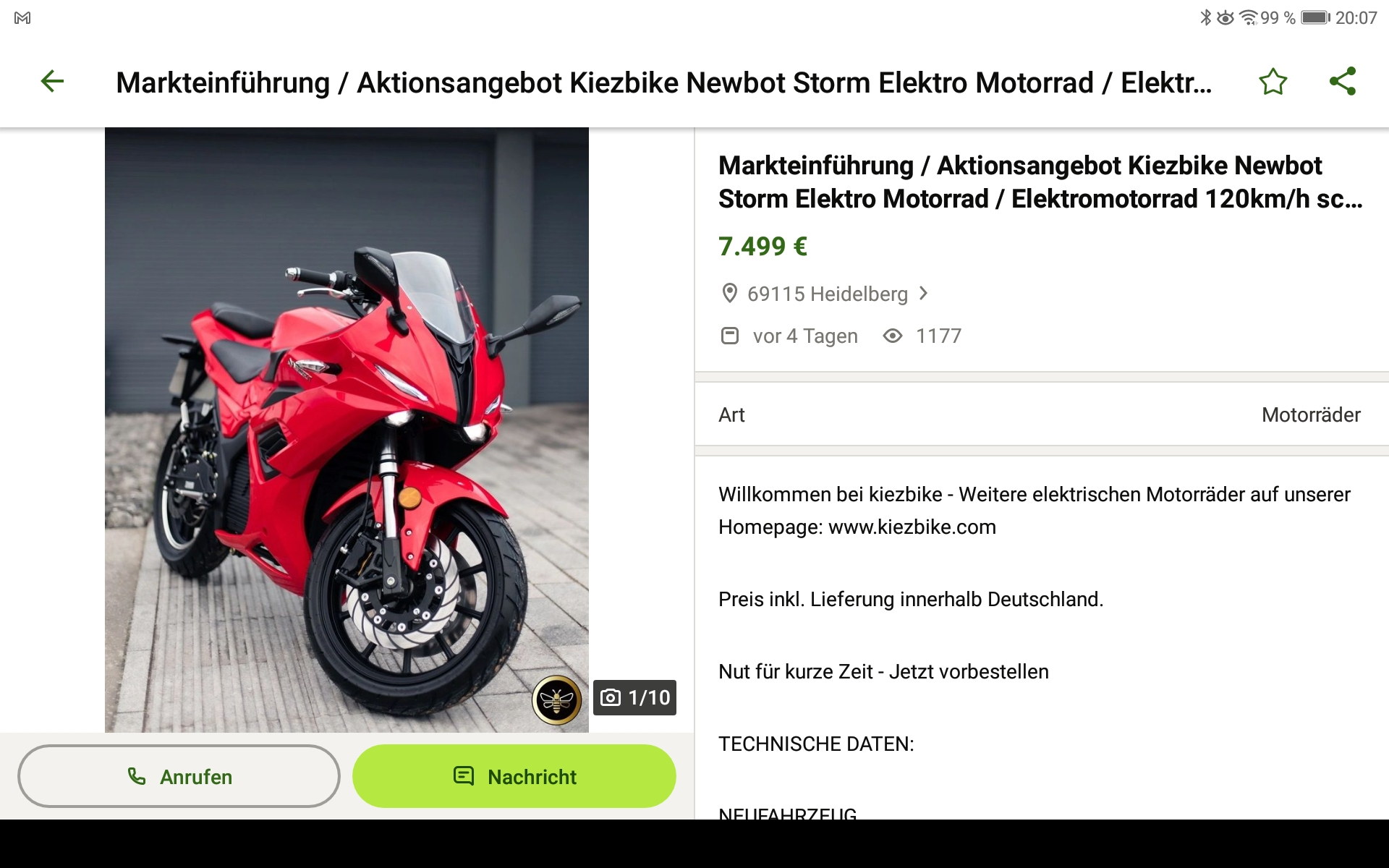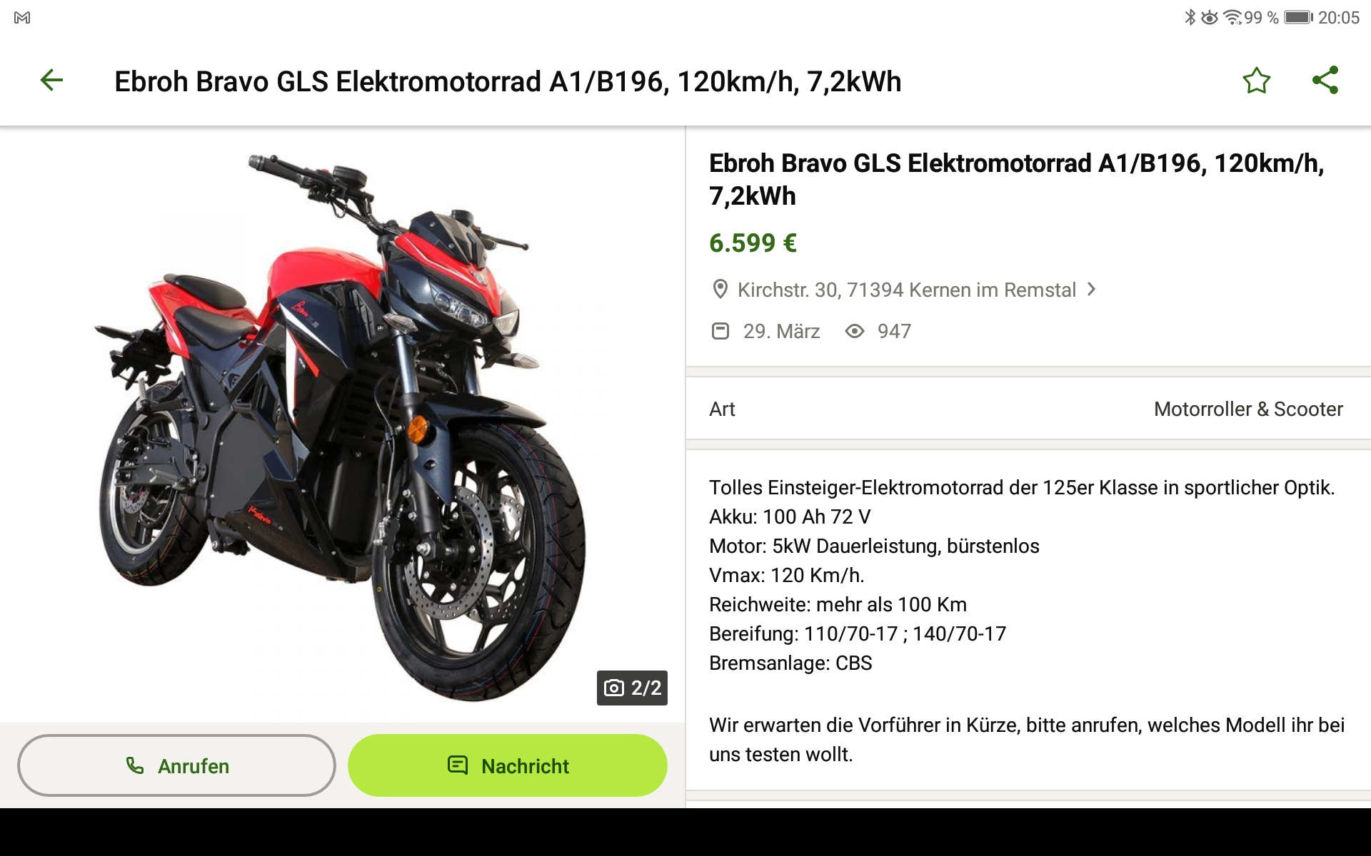 wenn es um Motorräder der A1-Klasse geht, die 100 km Reichweite schaffen sollen und bis 9.000€ kosten,