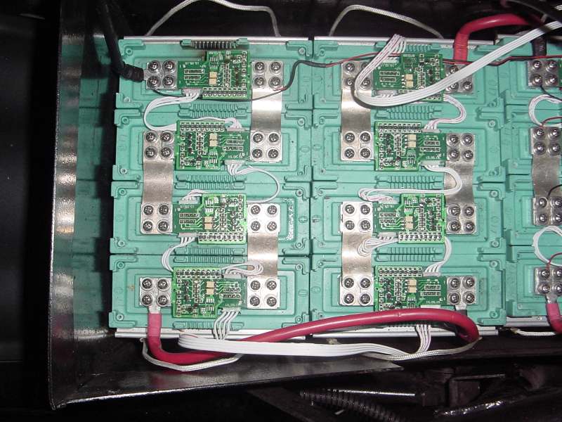 Mal ganz abgesehen von der seit fast einem Jahr währenden un-Verfügbarkeit des e-Vivacity: In den chinesischen Li-Rollern sind normalerweise nur 4 Zellen direkt miteinander verbunden, zu den benachbarten Zellreihen geht jeweils fettes Kabel, so lange wie jede Zellreihe, und manchmal sogar so lang wie zwei, wenn die Pole jeweils hinten und vorn in der jeweiligen Reihe sind, wie z.B. der rote Verbinder unten an der hintersten Reihe meines Pakets: Das ist schon gut und gerne 30cm lang, und es wiederholt sich jede zweite Reihe, wie man in der rechten unteren Ecke erkennen kann. Ob jetzt so ein Kabel mal 50cm lang ist statt 30 tut der Zuverlässigkeit keinerlei Abbruch, tut nur ein paar Miliohm zum Gesamtwiderstand der Batterie hinzu.dexter hat geschrieben:Die Zweiteilung des Akkus beim Peugeot hab ich nicht verstanden, IMO ist das eine unnötige Fehlerquelle.