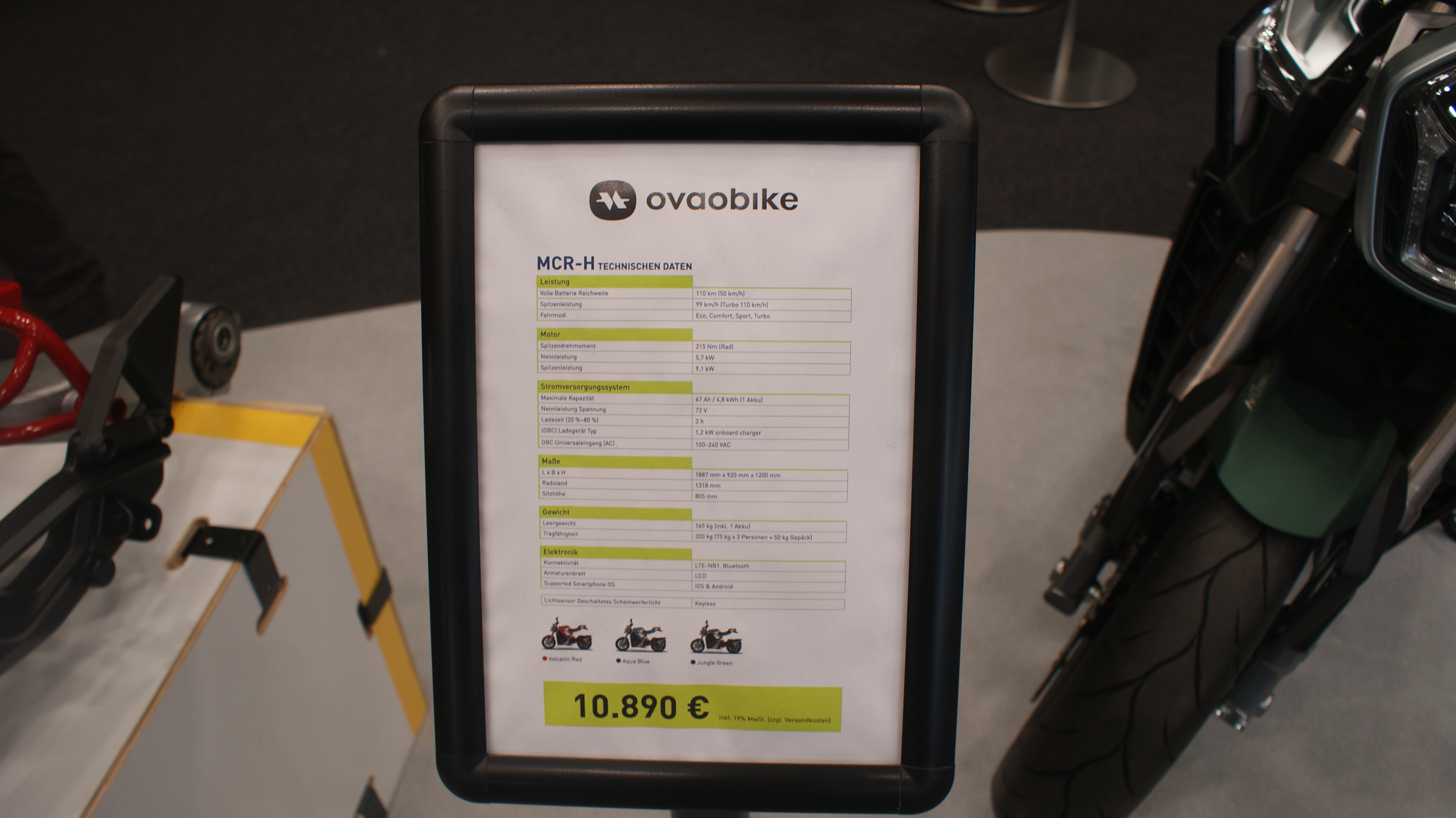 Die hat einen Akku, ebenfalls Mittelmotor mit knapp 11 KW Dauerleistung, Brembo Bremsanlage/ABS