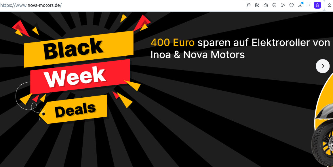 Nova Motors Inoa Sli9 max: 3.099€ (bisher: 3.499€), 80 km/h, 4,3 kW, 2 Akkus 60V/34Ah = 4080 Wh, 14-Zoll Reifen, G* RE*