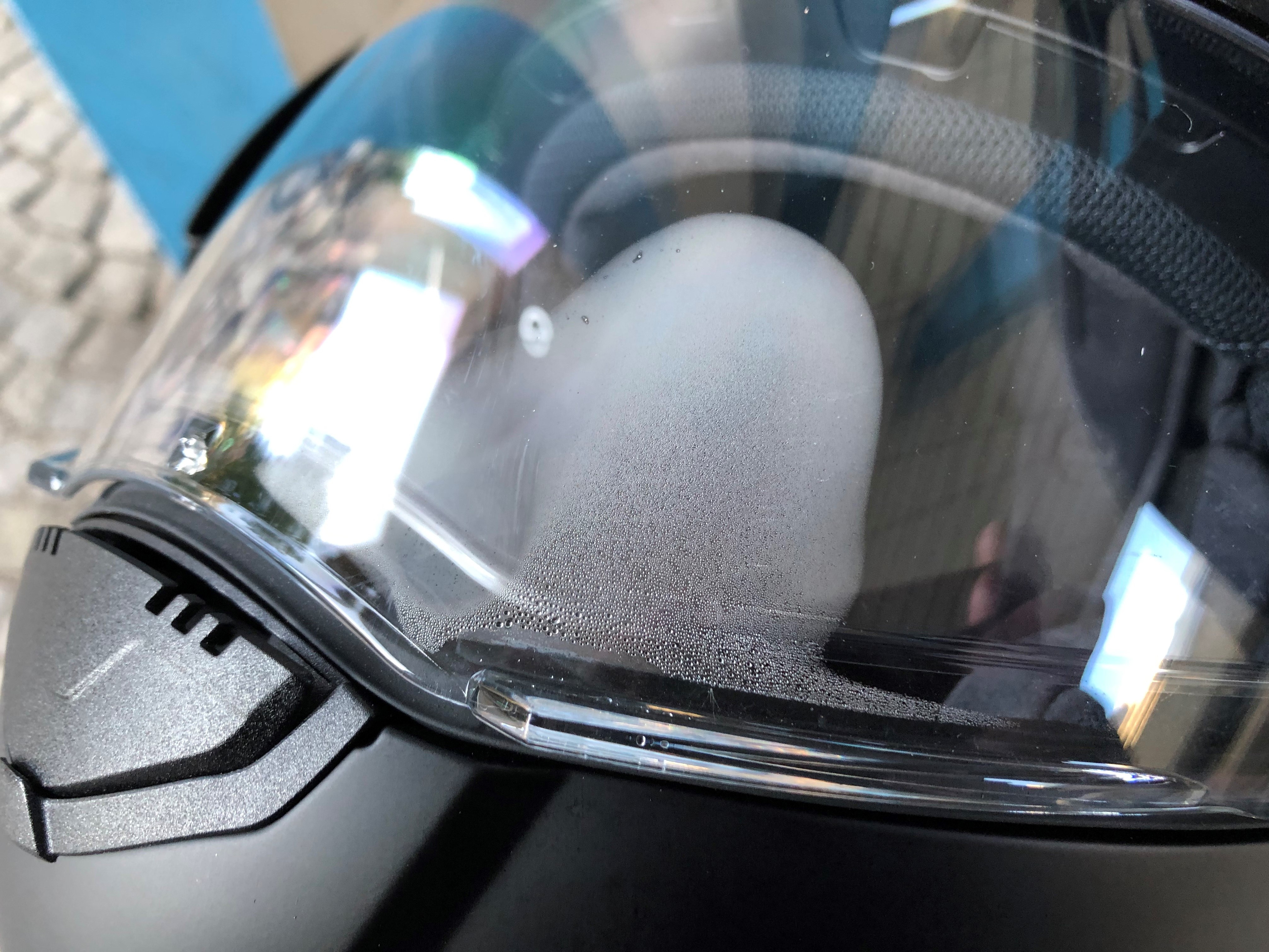 Hallo zusammen und einen schönen guten Morgen. Ich habe ein merkwürdiges Problem. Ich habe mir vor ca. zwei Wochen einen Schuberth C3 Pro gekauft für meinen NIU Sport Roller, also für Fahrten bis 45 km/h. Den Helm habe ich mir nach einer sehr langen Odyssee herausgesucht, weil auf meinen dicken Kopf entweder kaum was gepasst hat oder es mir nicht gefallen hat. Der Helm passt einfach super. Aber jetzt, wo es morgens 14 Grad hat, mache ich das Visier zu, damit es in den Augen nicht zieht. Alle Belüftungseinlässe sind aber noch offen. Der Helm besitzt eine Pinlock-Scheibe und ich ging nun davon aus, dass es damit kein Beschlagen oder wenn nur ganz wenig gibt. Aber nun das hier. Wie kann das passieren? Die Feuchtigkeit sitzt hier übrigens zwischen Visier und Pinlock, man kommt also nicht ran und kann eigentlich gar nichts machen. Das ging dann selbst mit offenem Visier nicht mehr weg!!! Kann ich hier selbst etwas tun oder ist das ein Garantiefall? Das darf doch so nicht sein bei 14 Grad. Was passiert erst bei 5 Grad?!
