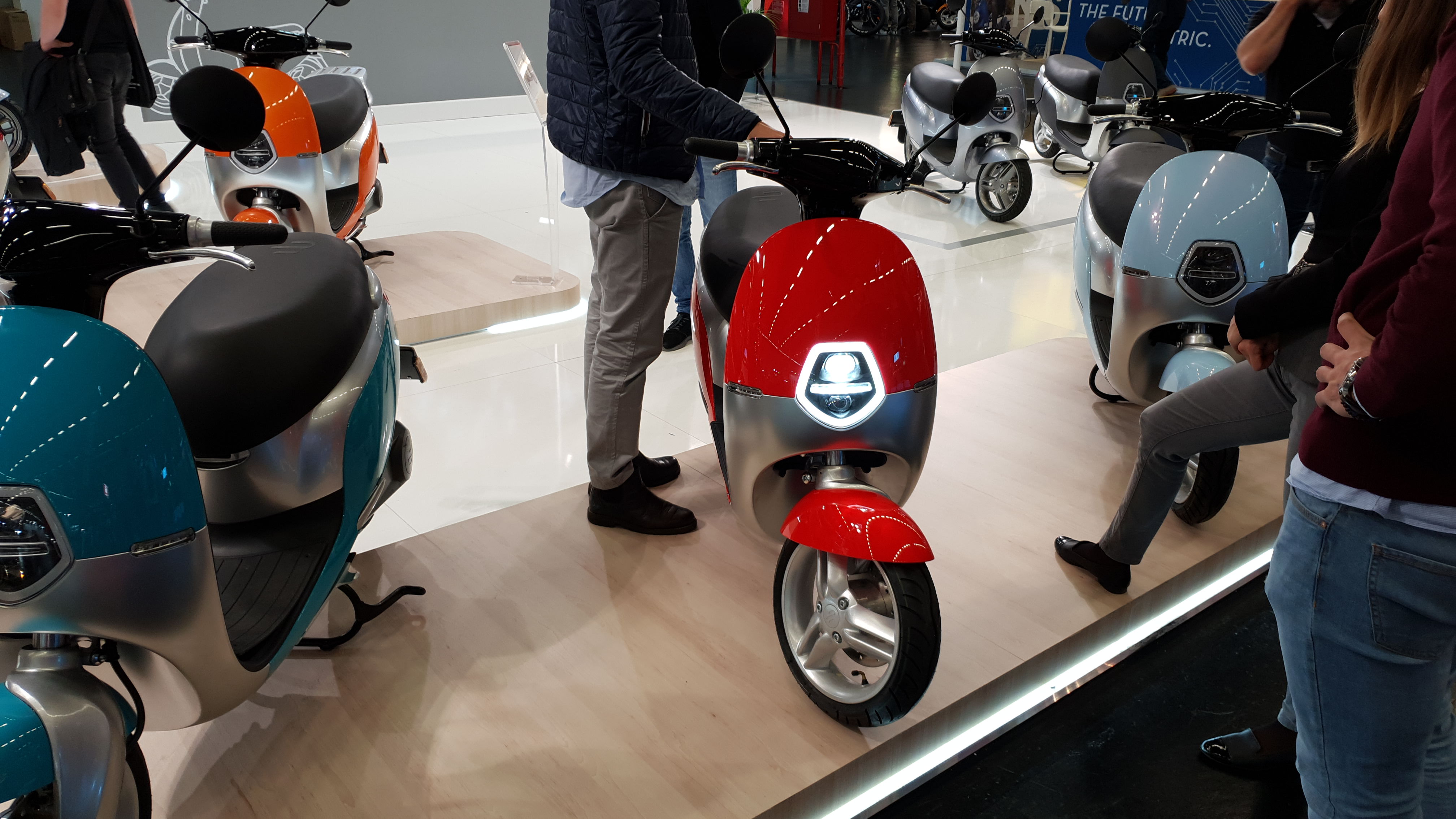 Vespa war zwar vertreten, der E-Vespa aber nicht. Er wird erst in einem Monat auf der EICMA in Mailand gezeigt. Da ist wohl etwas Nationalstolz Ursache der Entwicklung. Der Roller ist nämlich vorführfähig.