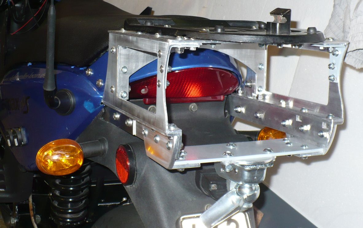 Jetzt bin ich endlich beim Anschliessen der ganzen Elektrik, u.a. nach einer mehrwöchigen Pause, in der ich noch einen Gepäckträger gebaut hab (über das Design läßt sich natürlich streiten, zumindest ist er aber stabil).
