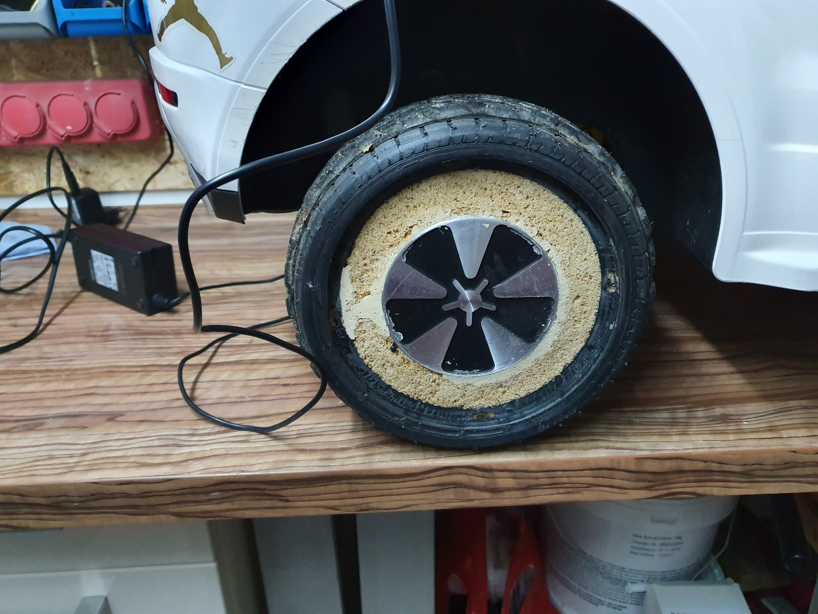 Also ich werde es mal mit einer Scheibenbremse versuchen. Man hat halt auf der Achse vom Hoverboardmotor nicht viel Platz zur Verfügung, da man ja noch den Halter nedenken muss. Hier noch mal ein Bild von dem Halter.