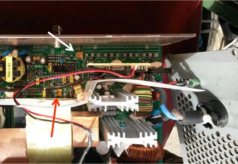 Damit diese nicht auch hochkochen, habe ich beim Originalladegerät 960-4CH35, E-Max 20A den Poti nähe Gehäuserand entgegen Uhrzeigersinn auf Ladestrom 57,8V runtergedreheht. Damit pulst der Lader auch nur noch mit ca. 61V. Leider spielte ich am Poti zwei ( etwas mittiger auf der Platine) auch gleich etwas herrum, an dem ich aber keine Spannungsänderung feststellen konnte. Nun meine Frage: