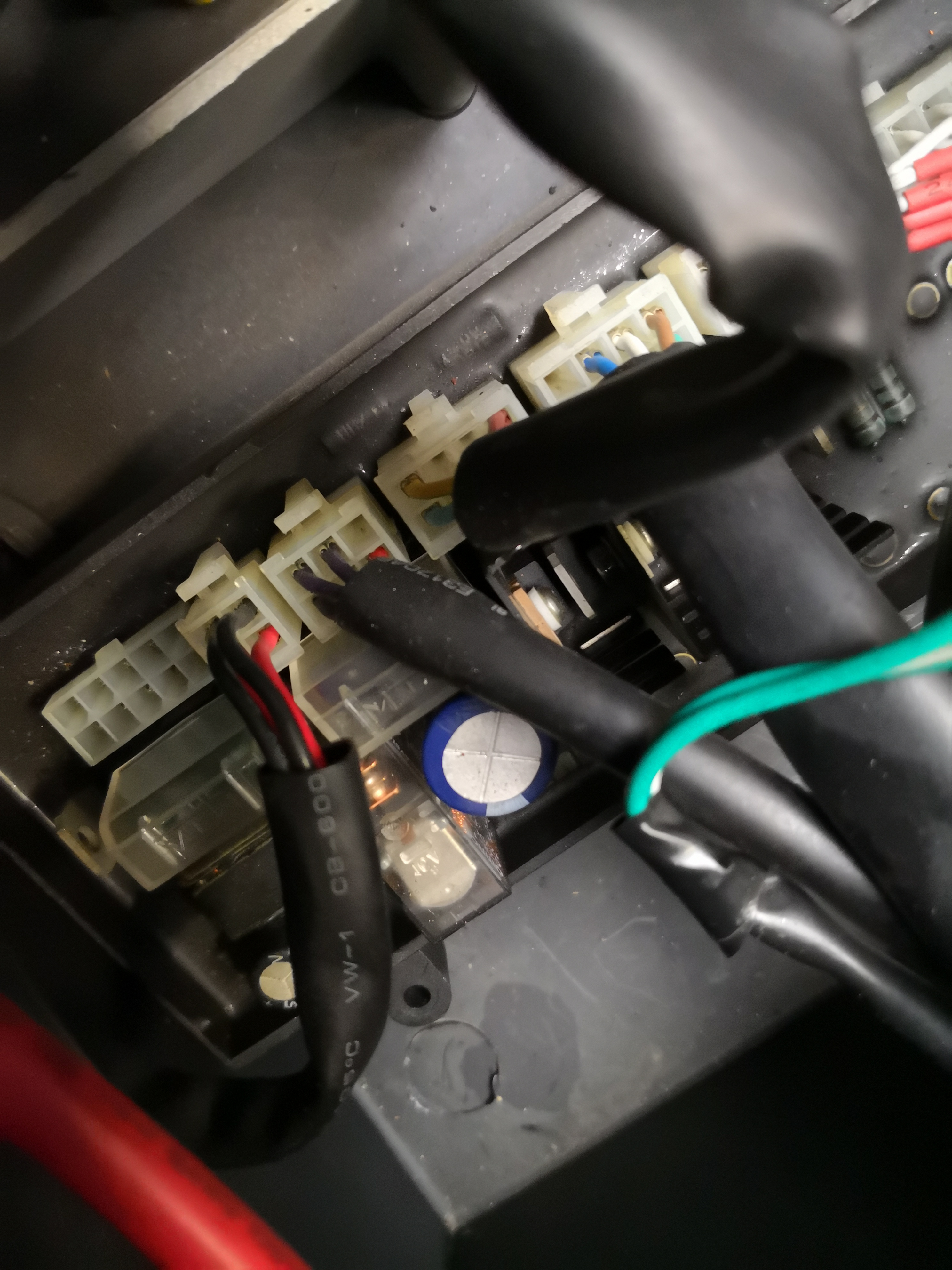 Anscheinend hat der Vorbesitzer auch schon ein paar Änderungen vorgenommen, da einige Kabel nicht so ganz original sind. Das Ladekabel wurde anscheinend verlängert und das Grüne kabel für den Seitenständer ist auch etwas zu lange.