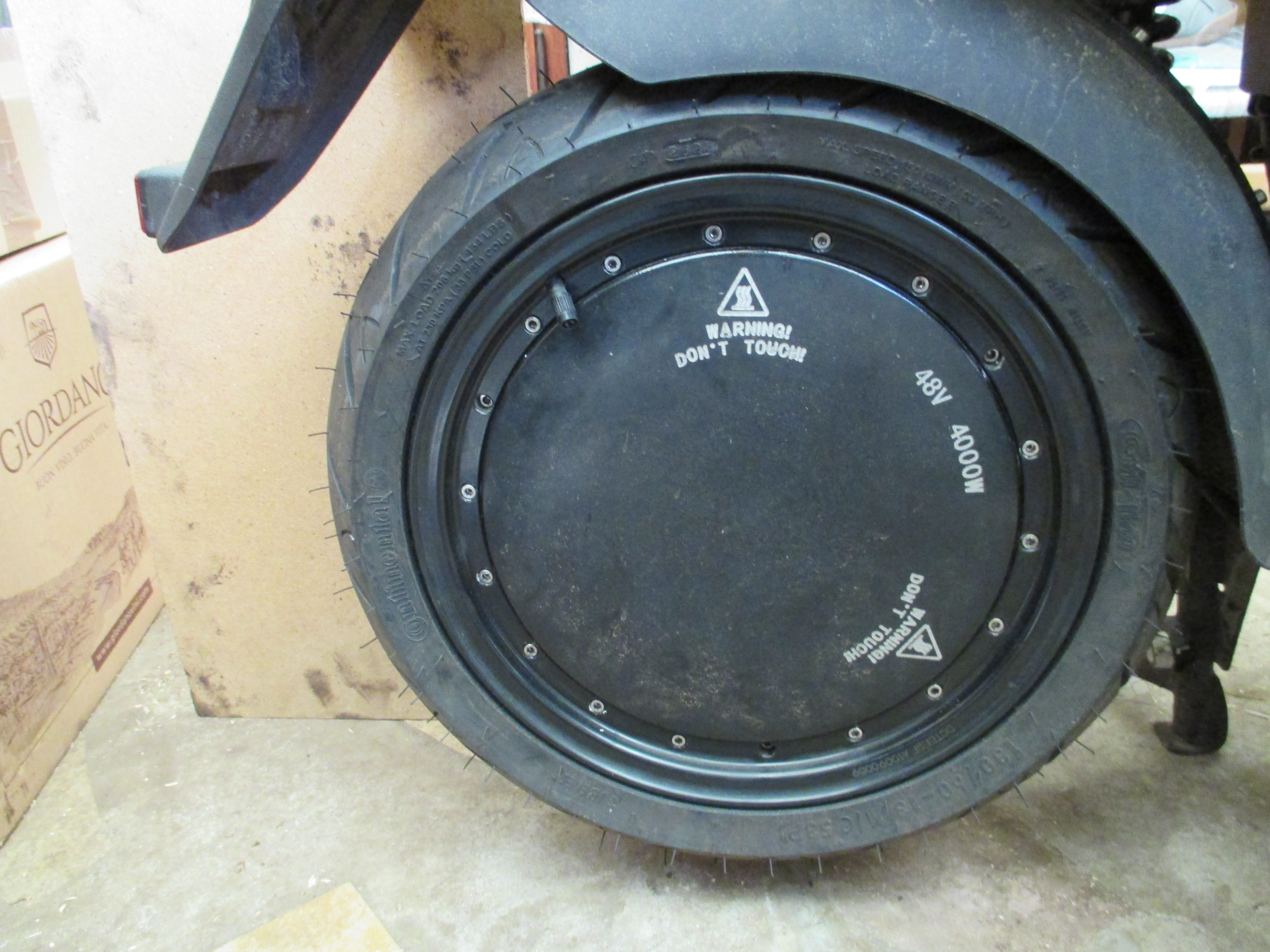 Reifen gestern geflickt und den Schlauch vorsichtig eingelegt, geschoben. Das Ventil muß mittig zwischen 2 Gewinden liegen, sonst paßt später der Felgenring nicht. Dieser hat 3 große Löcher und 15 Löcher für M5 Schrauben. Die Schrauben habe ich mit einem Steckschüssel handfest angezogen. Sollten Gewinde im Motor, Aluminium Legierung, beschädigt werden, ist der Motor unbrauchbar.