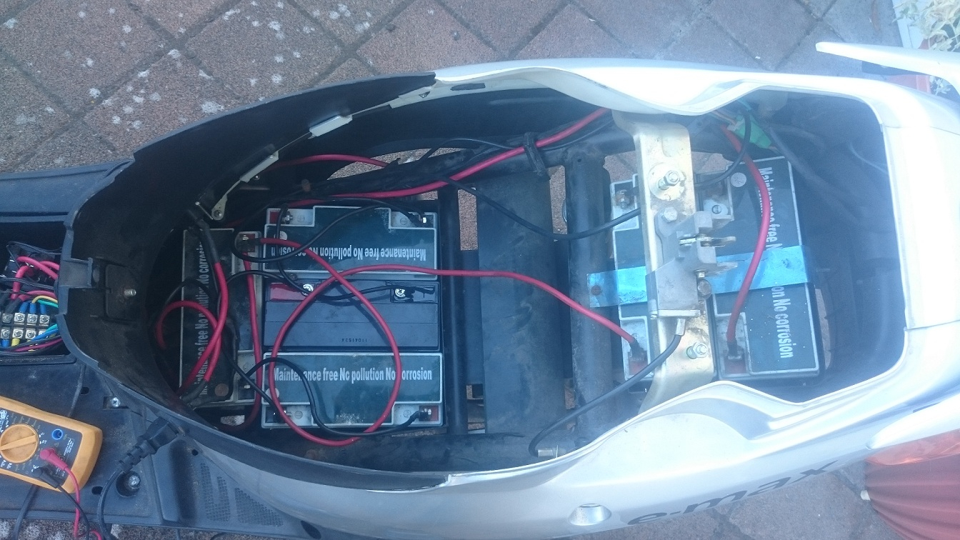 Ein alter E-max 1500 hat bestimmt 48 V. Original sind da bestimmt 4x32AH verbaut.