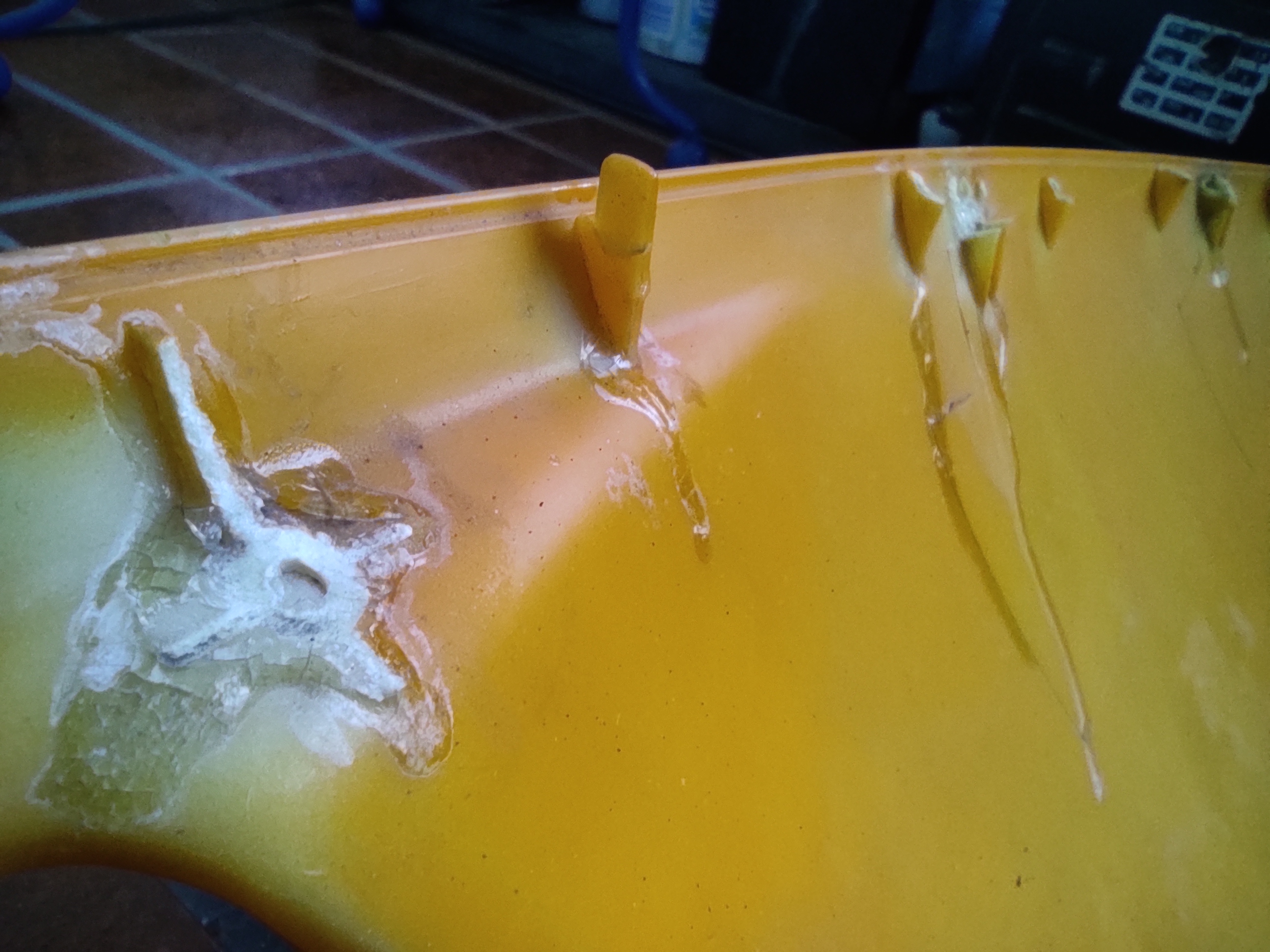 Bei meinem schwarz-organgen will ich die orangene Wanne reparieren und, da ich wohl mit schwarzem Kunstoff die Brüche reparieren muss, dann nachlackieren. Wird wohl schwierig, da der Kunststoff durchgehend orange ist.