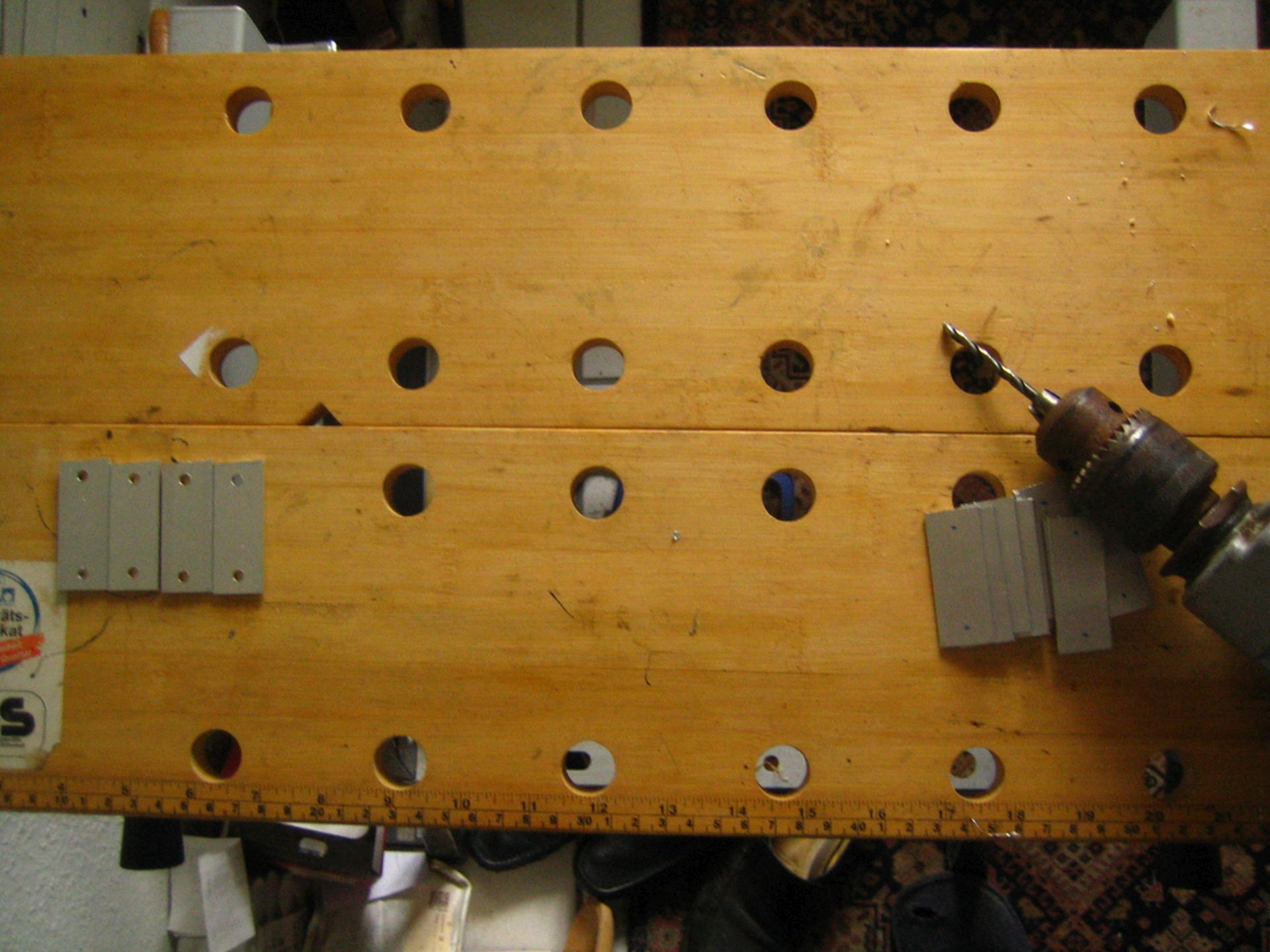 Dann begann die Produktion von 15 Stück Verbindern aus 2mm * 20mm Aluminium Flachstange: