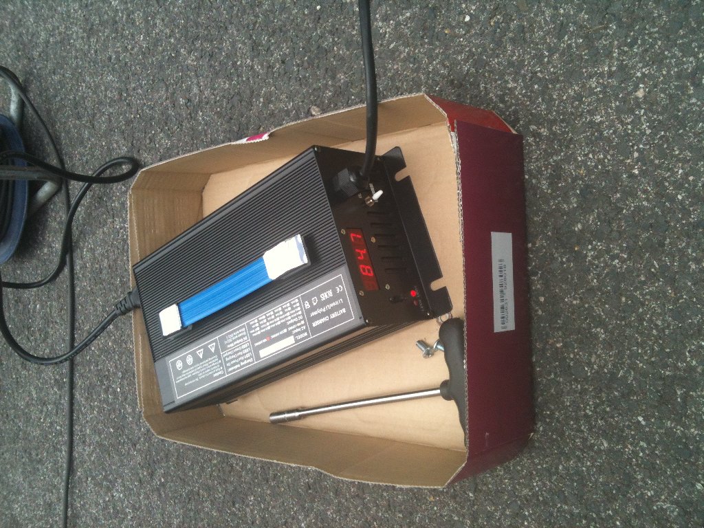 Die 10A-Sicherung zwischen Ladegerät und Roller kannst Du Dir wahrscheinlich sparen, normalerweise sollte das Ladegerät eine eingebaut haben, und sei es fest verlötet auf der Platine.