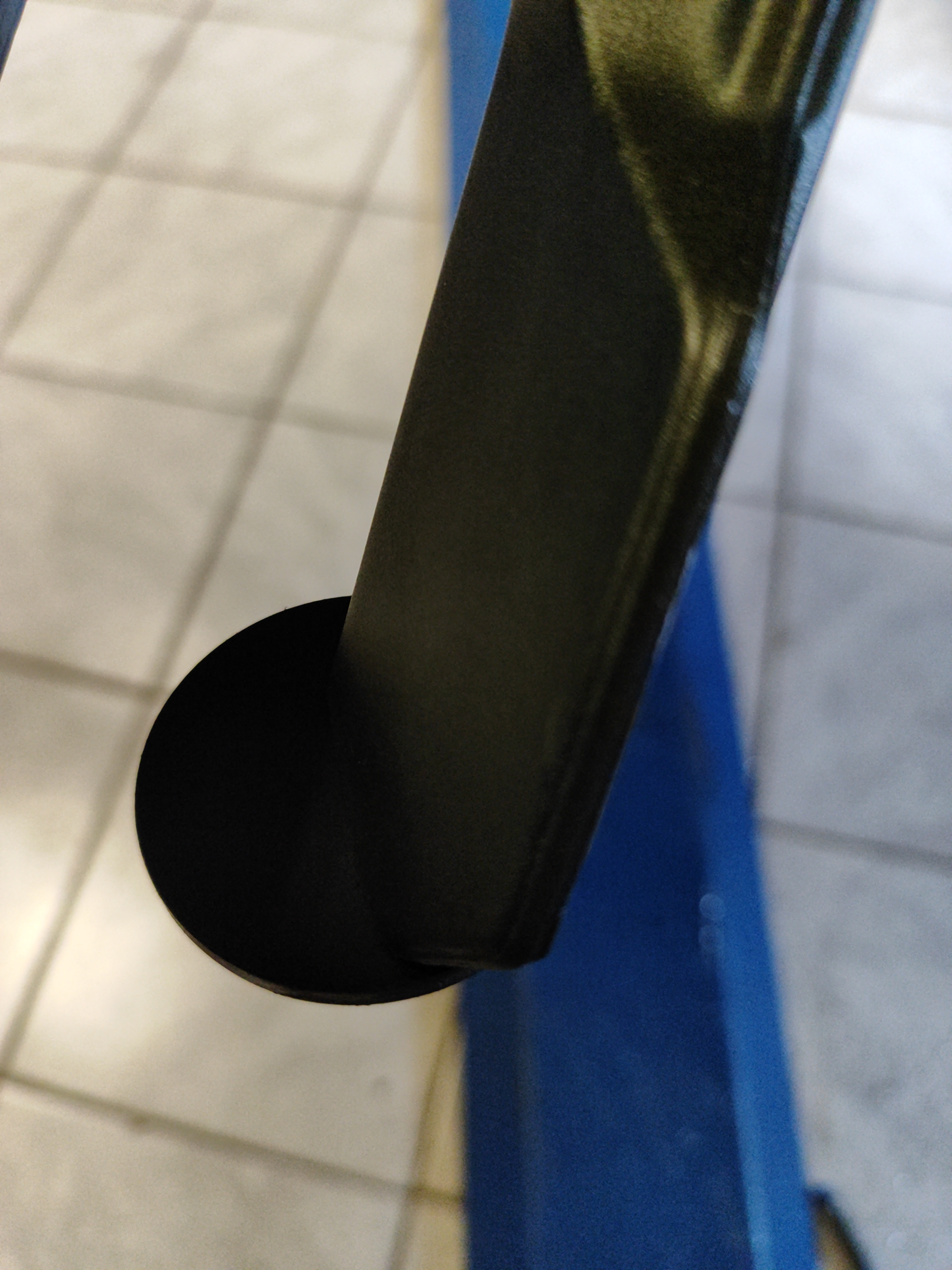 Da auf meinem Parkplatz in der Firma Rasengittersteine verlegt sind macht sich eine doppelt so große fläche als Auflage ganz gut. Ich hatte praktischerweise noch eine Edelstahlronde mit geeigneter Dicke hier die ich geschwärzt habe. Etwas steiler kann das gute Stück auch stehen für meinen Geschmack.
