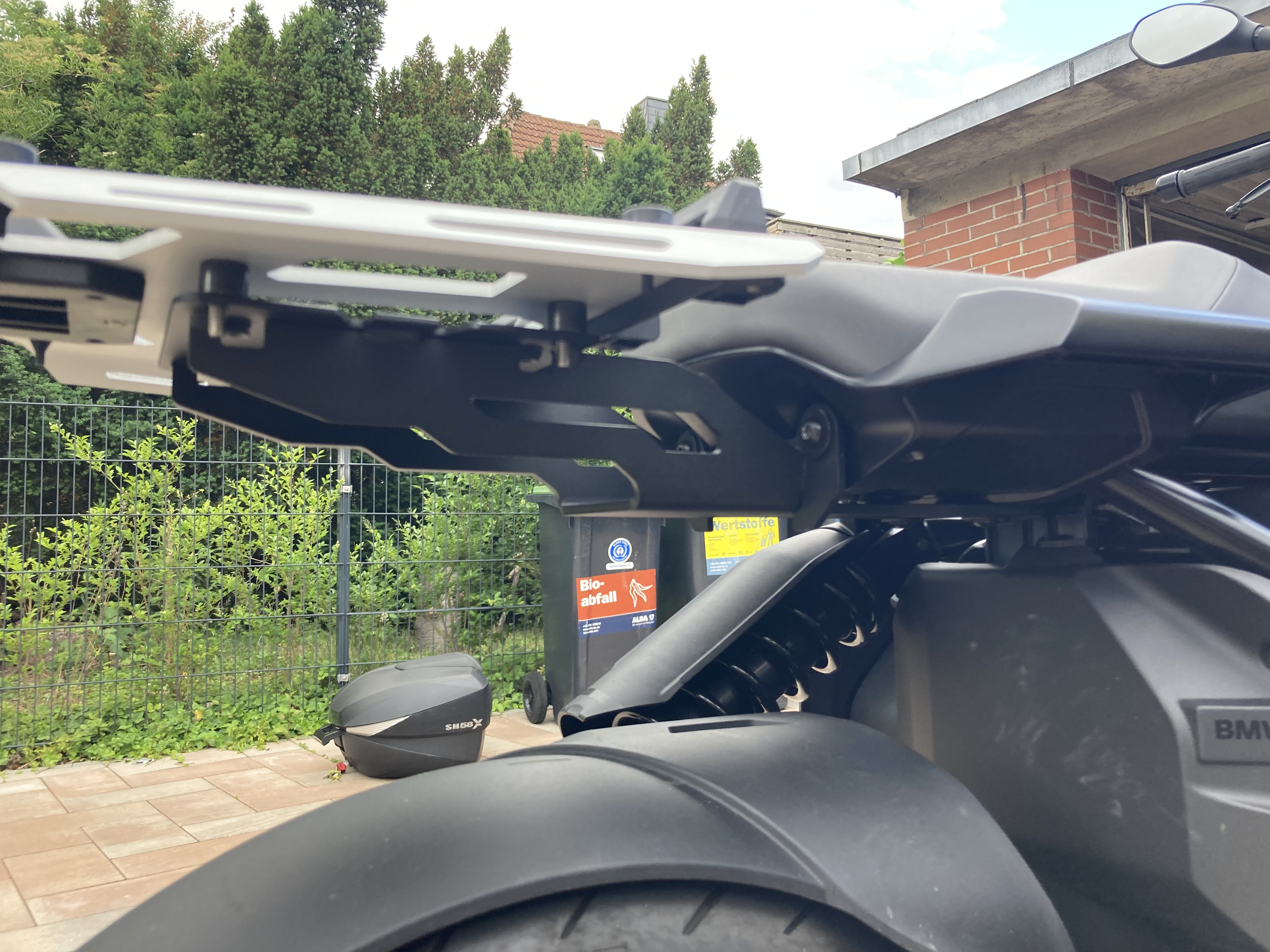 Leider folgte die erste Ernüchterung: es passt nicht zusammen mit dem originalen Seitentaschenhalter von BMW