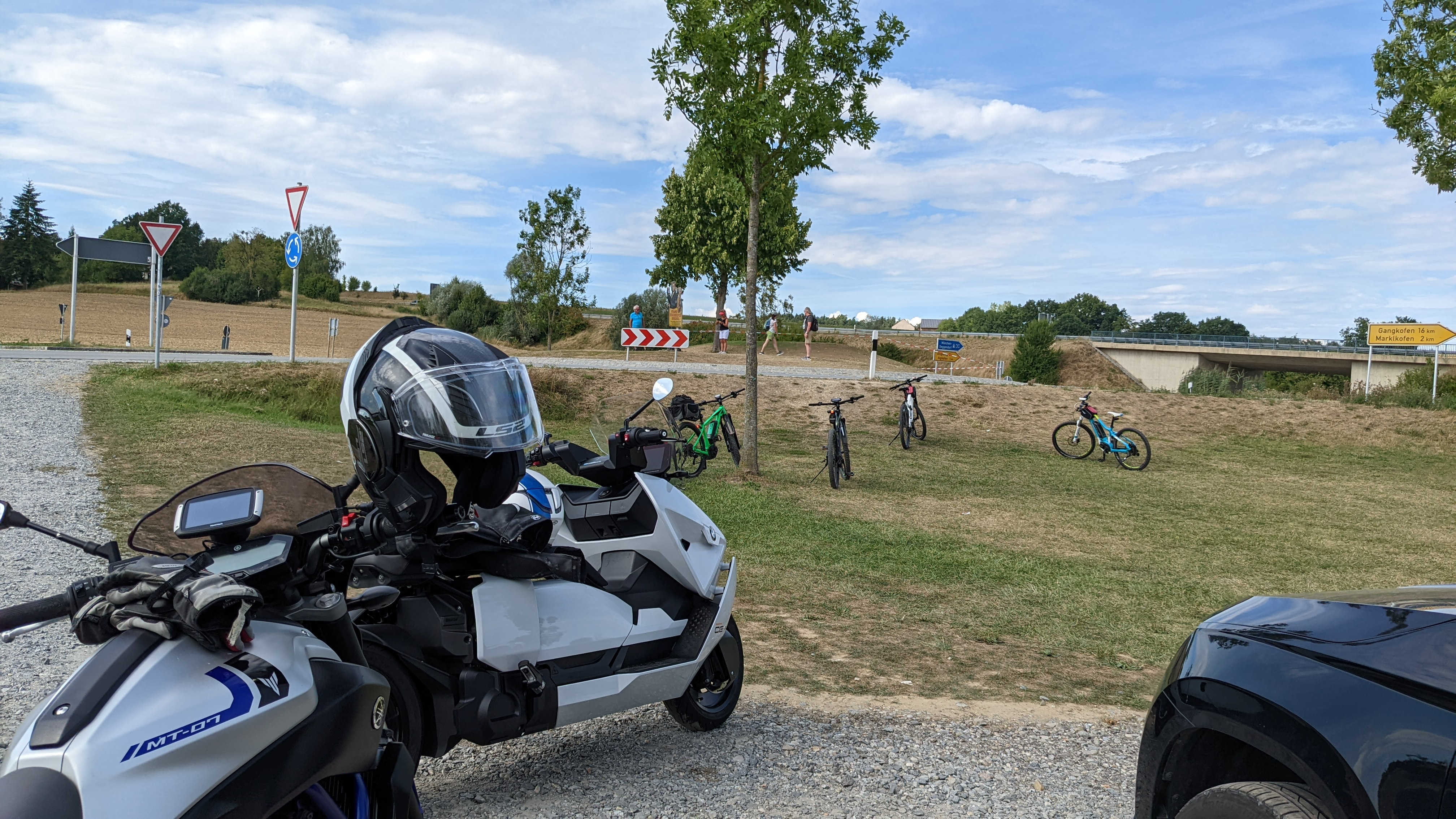 Und gleichzeitig hatte ich wieder ein Schlüsselerlebnis. Wir sind zum Laden (durch den Lieferanten Eingang) auf die Raststätte Rohrbrunn gefahren. Natürlich fing es genau dann an zu regnen. Ich habe den Roller angesteckt, kommt die Meldung "Ladeinfrastruktur defekt“. Dann habe ich die Servicenummer abgerufen. Die Dame hat die Ladesäule zweimal neu gestartet - keine Ladung möglich. Meine Restreichweite waren so ca 18km. Da finde erstmal ne Ladesäule im Spessart. Aber glücklicherweise gab es in ca 8km Entfernung ein Hotel mit.Wallbox. Da stand die Ladesäule ungelogen 200m weg am Waldrand an einem Schotterweg. Sachen gibt's