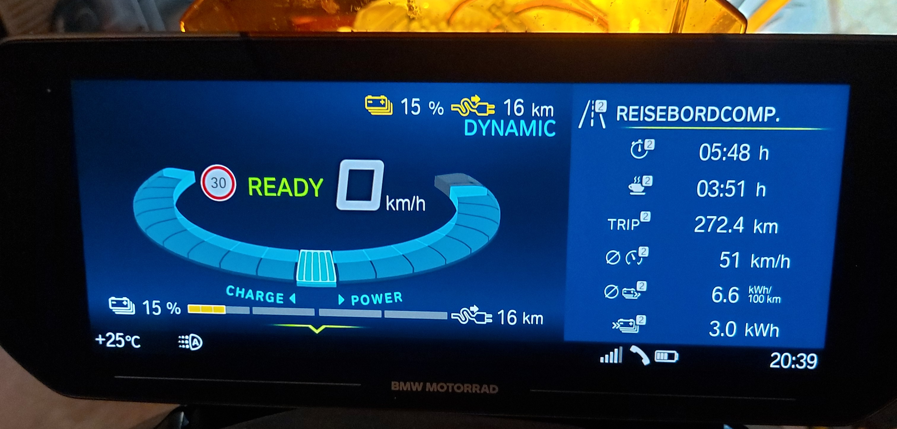 Zu zweit braucht der CE04 mehr Strom, und wenn man unbedacht fährt, also z.B. nicht auf die Aerodynamik achtet, dann ist der von mir erlebte Durchschnittsverbrauch nicht zu machen, da bin ich sicher. Auch wenn man mit zügig fahrenden Motorrädern mithalten will, speziell wenn diese überall mit dem gewissen Überschuß durchziehen, dann hat man ganz sicher viel mehr Stromverbrauch.
