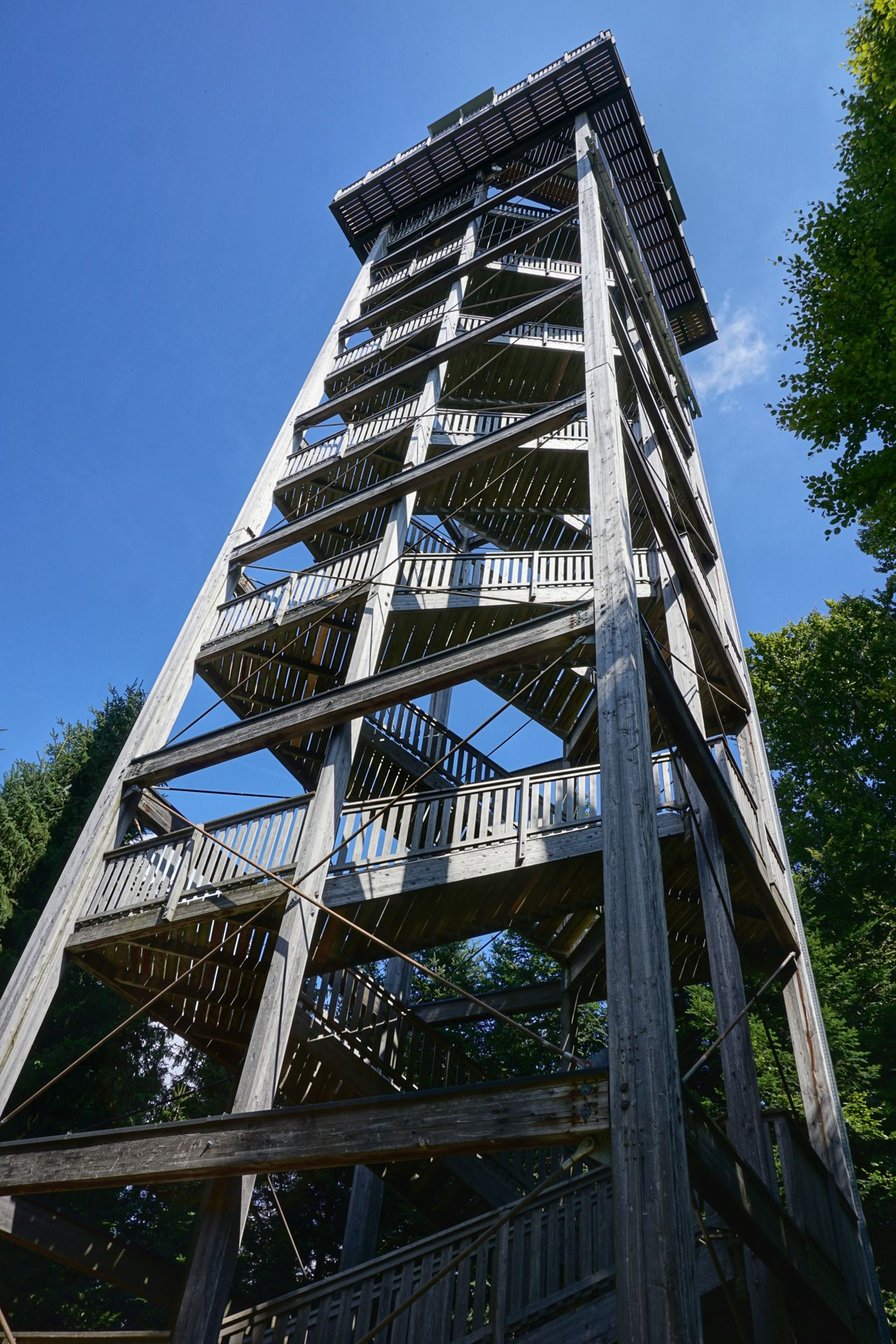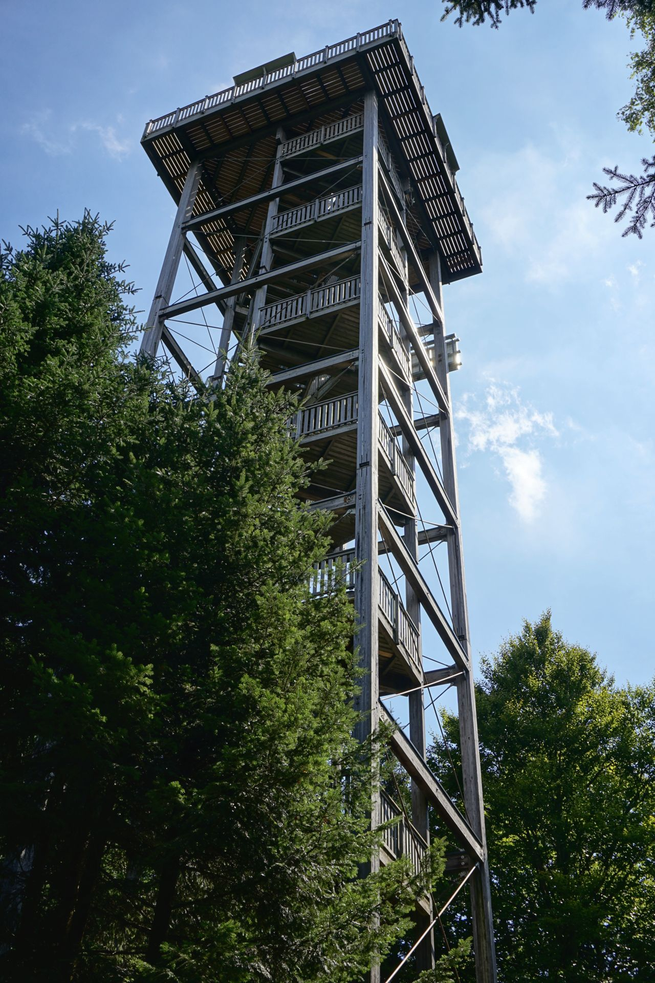 Aussichtsturm Göblberg im Hausruckwald, Nähe Ampflwang, diesmal mit ca 30min wunderbarem Fussmarsch vom Parkplatz zum Turm. Wir hatten leichte Klamotten mit.