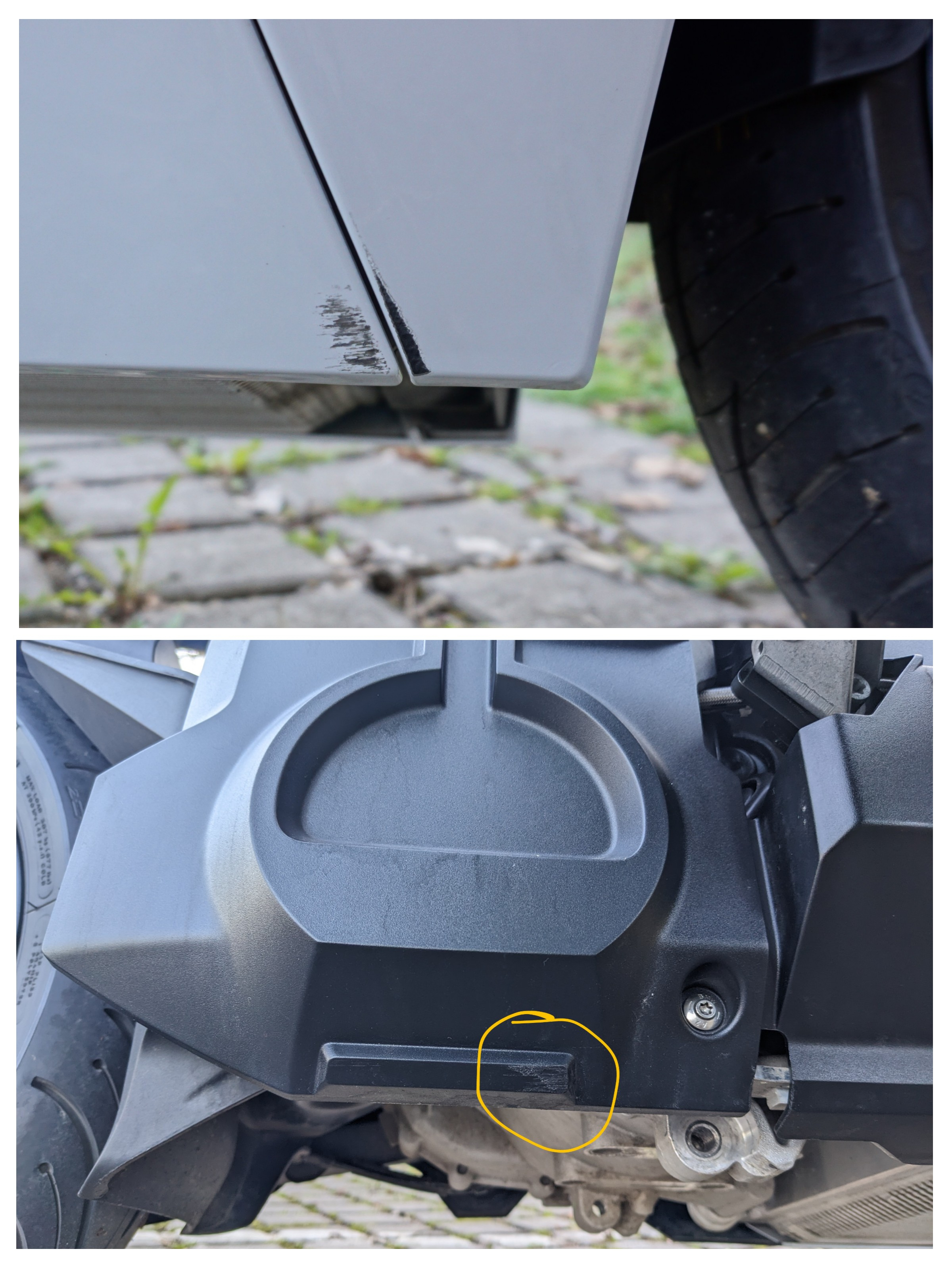Es wäre ein Verkaufsthema, ansonsten nur ein kleines vermeidbares Ärgernis. Ich mag einfach keine solchen Schlampigkeiten. Und verkauft wird der Roller nicht. Im Extremfall eines unerwarteten Verkaufs müsste man in die zwei weissen Plastikteile investieren als saubere Behebung, oder halt die Teile vom Lackierer ausbessern lassen.