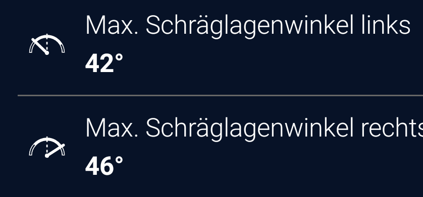 Ich hab nur wenige fahrten aufgezeichnet und erst dieses Jahr damit angefangen, mehr als 31° Schräg war ich bisher nicht. Ist also noch genug mindestens bei mir.
