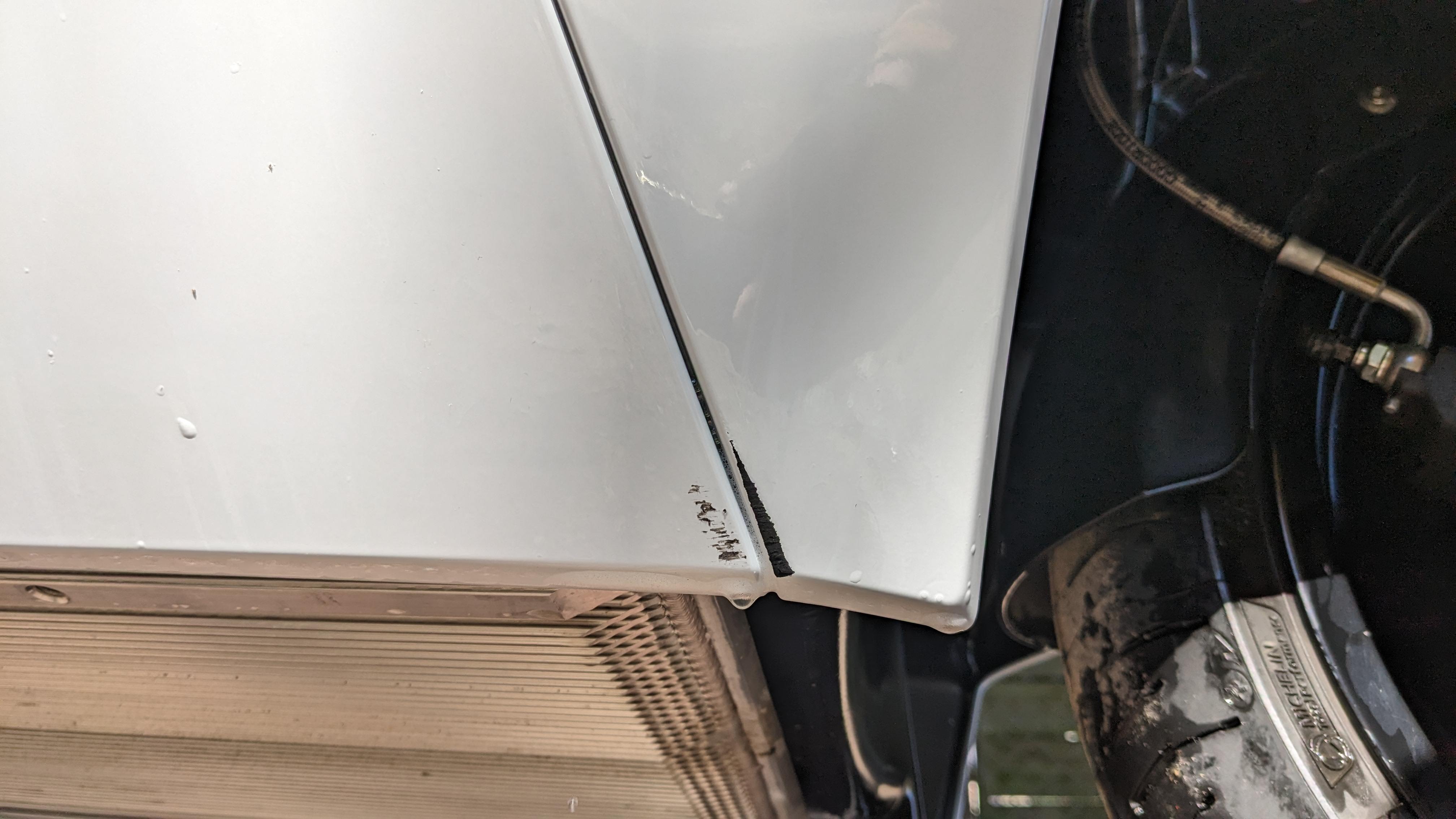 Schade, erste Macke am Fahrzeug. Zwei Stellen. Siehe Foto. Dabei sehr deutliches Geräusch. Das Geräusch schien ärger als der Schaden.